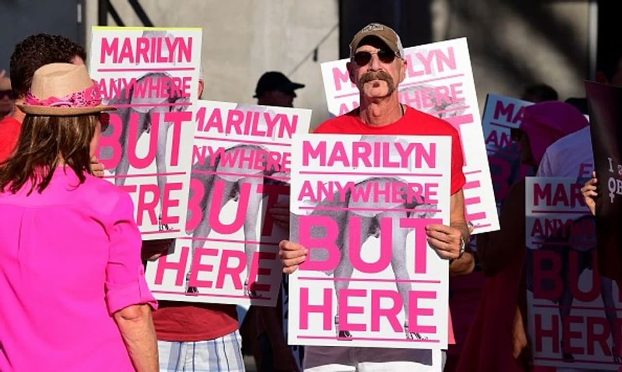 ഒരു ആക്ടിവിസ്റ്റ് ഗ്രൂപ്പ് #MeTooMrallyn എന്ന പേരില് നിവേദനം എഴുതിയ സമയത്ത് 41,700 ലധികം ഒപ്പുകൾ ശേഖരിച്ചിട്ടുണ്ടായിരുന്നു. 1962 ഓഗസ്റ്റിൽ അന്തരിച്ച മൺറോയെ, ഒരു മികച്ച കാലാകാരിയെന്ന തരത്തിലാണ് ഉള്ക്കൊള്ളേണ്ടത് അല്ലാതെ വെറുമൊരു ലൈംഗികവസ്തുവായിട്ടല്ല, അവളുടെ ഓര്മ്മകളെ നഗരം അശുദ്ധമാക്കരുത് എന്നും നിവേദനത്തില് പറയുന്നു.