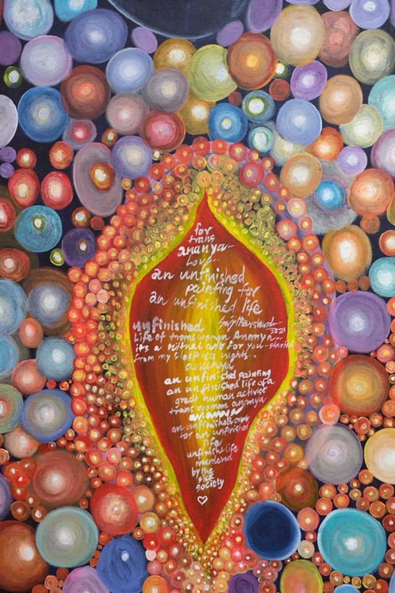 അനന്യയുടെ ആത്മഹത്യ മാത്രമല്ല നാം കണ്ടത്. അതിനുശേഷമുള്ള ദിവസം അവളുടെ പങ്കാളിയും ആത്മഹത്യ ചെയ്തു. ഈ ആത്മഹത്യകളിൽ സർജറിയിലെ പാളിച്ചകൾക്ക് പങ്കുണ്ട്. അതുപോലെ ഈ സമൂഹത്തിനാകെയും പങ്കുണ്ട്. അതിനോടുള്ള പ്രതികരണം കൂടിയാണ് ഈ പെയിന്റിംഗ്. അനന്യയുടെ മരണമറിഞ്ഞ് പിറ്റേദിവസം വരച്ചു തുടങ്ങിയതാണ്. എന്നാല്, ഈ മാസം നാലിനാണ് പൂര്ത്തിയായത്. ഇത് അനന്യയ്ക്കുള്ള എന്റെ റിച്ച്വലാണ്.
