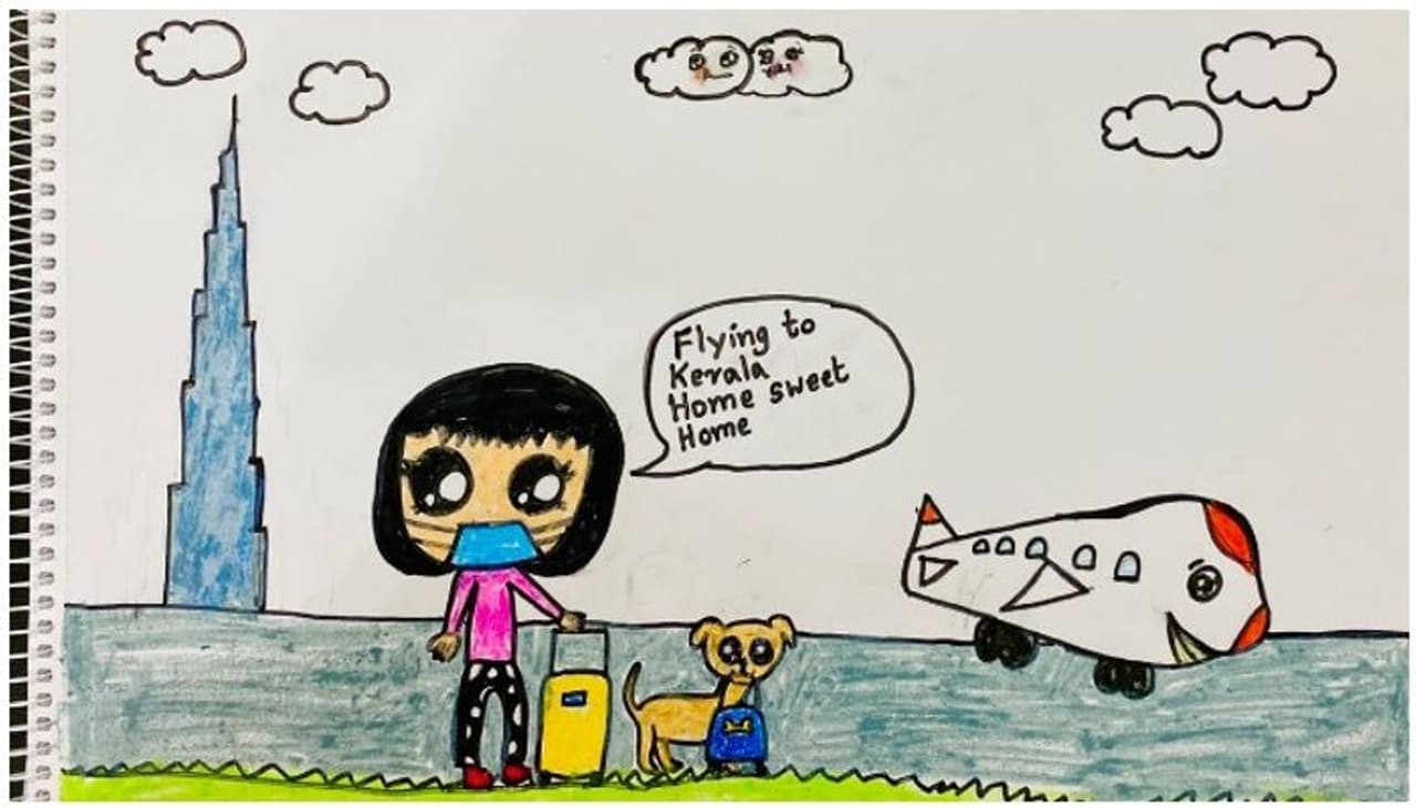 ടിവിയിൽ കണ്ട ദൃശ്യങ്ങളൊക്കെ നിയയെ സങ്കടപ്പെടുത്താറുണ്ട്. അതൊക്കെ വരച്ചു നോക്കാൻ അച്ഛനും അമ്മയും പറഞ്ഞപ്പോഴാണ് നിയമോൾ അതിഥി തൊഴിലാളികളുടെ സങ്കടവും കൊറോണ പ്രശ്നങ്ങളുമൊക്കെ വരയിലാക്കിയത്. ''കേരളത്തിൽ എത്തിയാൽ വീടെത്തി, സുരക്ഷിതരായി എന്ന ചിന്ത എല്ലാ പ്രവാസികളിലുമെന്നപോലെ ഞങ്ങൾക്കും ഉണ്ട്. അതിൽ നിന്നൊക്കെയാകണം നാട്ടിലെത്തുന്നതോടെ സുരക്ഷിതരാകും എന്ന ചിന്ത അവൾക്കും കിട്ടിയത്.'' അൻഷ പറയുന്നു.