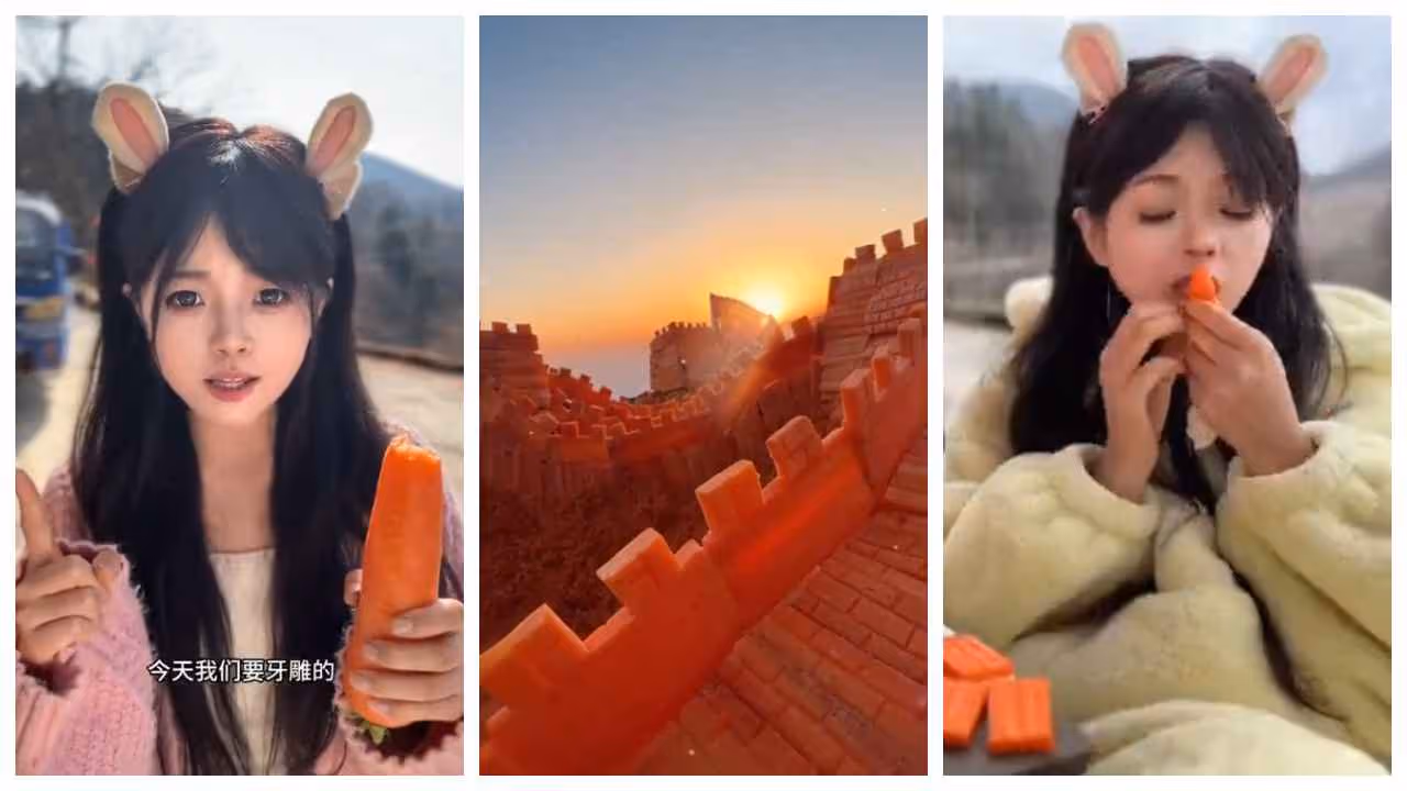 കടിച്ച് പൊട്ടിച്ചും കരണ്ടെടുത്തു യുവതി ശില്പങ്ങളുണ്ടാക്കിയപ്പോൾ സമൂഹ മാധ്യമങ്ങളിൽ അവളെ പിന്തുടർന്നത് 12 ലക്ഷത്തോളം പേർ. മധ്യ ചൈനയിലെ ഹുബെയ് പ്രവിശ്യയിൽ നിന്നുള്ള 25 -കാരിയായ ചെൻ ക്വിൻ ആണ് തന്റെ അസാധാരണ കഴിവിലൂടെ സമൂഹ മാധ്യമങ്ങളിൽ ലക്ഷക്കണക്കിന് പിന്തുടർച്ചക്കാരെ ആകർഷിച്ചത്. തന്റെ വീഡിയോകളിൽ ചെൻ ക്വിൻ കാരറ്റുകൾ കടിച്ച് മുറിച്ച് മനോഹരവും സങ്കീർണവുമായ ശില്പങ്ങൾ ഉണ്ടാക്കുന്നത് കാണാം.