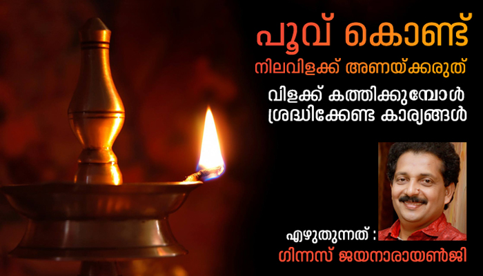 നിലവിളക്ക് കത്തിക്കുമ്പോഴും അണയ്ക്കുമ്പോഴും ചില കാര്യങ്ങൾ ശ്രദ്ധിക്കണം. എഴുതുന്നത്: ഗിന്നസ് ജയനാരായൺജി