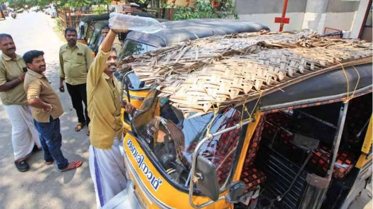 കൊടുചൂടില് തന്റെ ഓട്ടോറിക്ഷയ്ക്ക് 'ഓലക്കുട' ചൂടി യാത്രക്കാരെ തണുപ്പിക്കുകയാണ് ഒരു ഓട്ടോ ഡ്രൈവര്