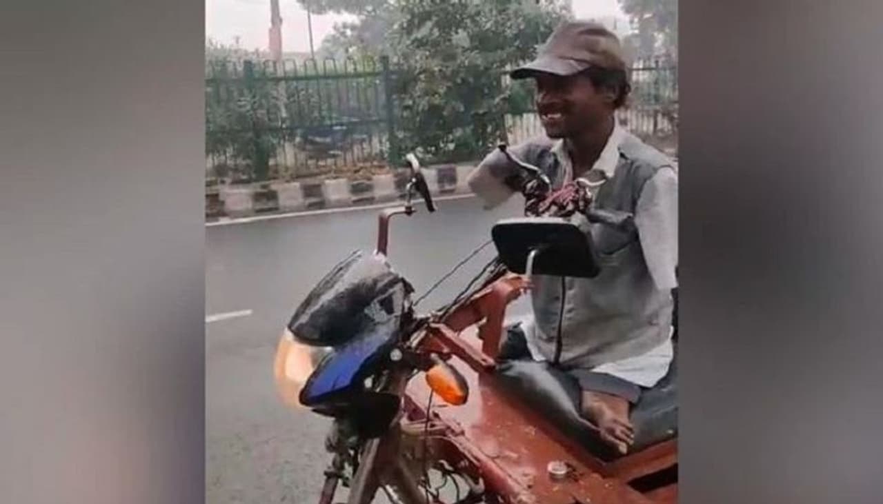കൈകാലുകള് തീരെ ചെറുതായ അവസ്ഥയിലുള്ള ഒരു യുവാവിനെയാണ് ട്വിറ്ററിലെ വീഡിയോ കാണിക്കുന്നത്. ഇരുകൈകളും മുട്ടിനു താഴോട്ട് പൂർണമായും ഇല്ല. കാലുകളും സമാനമാണ്. എന്നാൽ, അവശതകൾ പറഞ്ഞ് വീട്ടിലിരിക്കാൻ അദ്ദേഹം ഒരുക്കമായിരുന്നില്ല. അവശതകളൊരു ശേഷിയാക്കി മാറ്റുകയായിരുന്നു അദ്ദേഹം. ഭിന്നശേഷിക്കാരന് വാഹനം ഓടിക്കുന്നത് കണ്ട വഴിയാത്രക്കാരിൽ ചിലർ അദ്ദേഹത്തോട് ചോദ്യങ്ങൾ ചോദിക്കുന്നതും വീഡിയോയില് കേള്ക്കാം. അപ്പോള് അദ്ദേഹം ഹോണ്ട ബൈക്കില് നിന്ന് എഞ്ചിൻ ഘടിപ്പിച്ച തന്റെ റിക്ഷ എങ്ങനെ പ്രവർത്തിപ്പിക്കുന്നുവെന്ന് കാണിക്കുന്നു. ആക്സിലറേറ്ററും ബ്രേക്കുകളും എങ്ങനെ പ്രവർത്തിപ്പിക്കുന്നുവെന്നും വാഹനം തിരിക്കാൻ തന്റെ നെഞ്ച് എങ്ങനെ ഉപയോഗിക്കുന്നതും അദ്ദേഹം കാണിക്കുന്നു. അഞ്ചുവർഷത്തോളമായി തന്റെ ഉപജീവനമാർഗമാണിതെന്ന് വിഡിയോയിൽ അദ്ദേഹം പറയുന്നുണ്ട്.