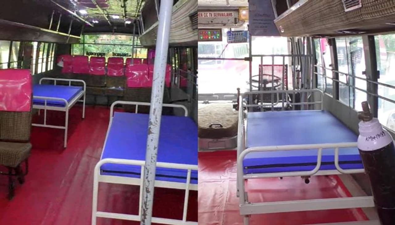 ആശുപത്രിയിലെത്തുന്ന കൊവിഡ് രോഗികൾക്ക് താങ്ങായി ബസ്സ് ഉടമയും. ചെർപ്പുളശ്ശേരി സ്വദേശി രാജു തന്റെ ബസ്സുകൾ രൂപമാറ്റം വരുത്തി ചികിത്സ സൌകര്യങ്ങളേർപ്പെടുത്തി ആശുപത്രിക്ക് വിട്ടുകൊടുത്തു. രോഗികൾക്ക് വേണ്ട അടിയന്തിര പരിചരണമാണ് ഈ ബസ്സുകളിൽ ഒരുക്കിയിരിക്കുന്നത്. .കൊവിഡ് രോഗബാധിതർ കൂടുകയും ആശുപത്രിയിൽ ഓക്സിജൻ സൌകര്യമുളള കിടക്കകളുടെ എണ്ണം കുറയുകയും ചെയ്യന്ന പശ്ചാത്തലത്തിലാണ് പുതിയ മാതൃക.