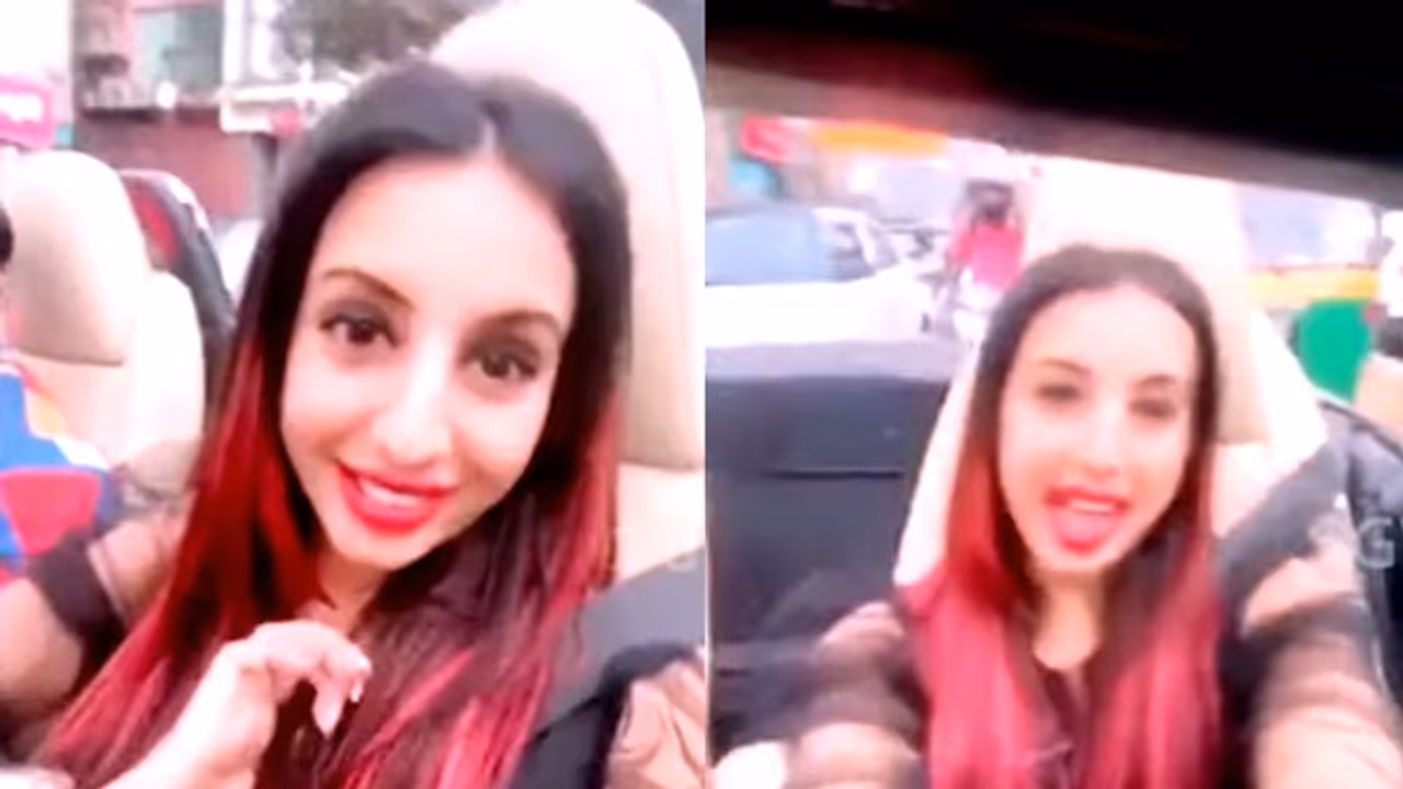 റൂഫ് തുറന്ന നിലയിലുള്ള കാറിൽ നടിക്കൊപ്പം മറ്റൊരാൾ കൂടി ഉണ്ടായിരുന്നു