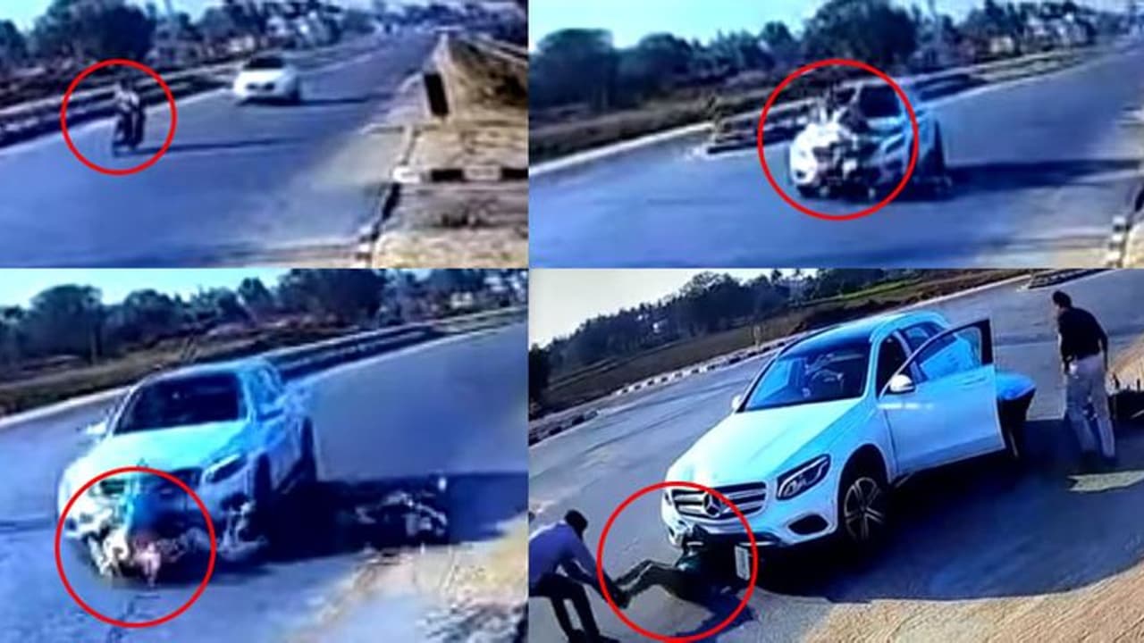 ഹൈവേയില് അശ്രദ്ധമായി യൂടേണ് എടുത്ത ബൈക്ക് യാത്രികരാണ് അപകടത്തില്പ്പെട്ടത്. നാലുവരിപ്പാതയില് ആദ്യം വലത്തേക്ക് തിരിയുകയും തുടര്ന്ന് സിഗ്നല് ഒന്നും നല്കാതെ ഇടത്തേക്ക് തിരിക്കുകയും ചെയ്യുന്ന ബൈക്ക് വീഡിയോയില് കാണാം. ഈ ബൈക്കിനെ പിന്നാലെയെത്തുന്ന മെഴ്സിഡസ് ബെന്സ് എസ്യുവി ഇടിച്ചു തെറിപ്പിക്കുന്നതും വീഡിയോയില് കാണാം.