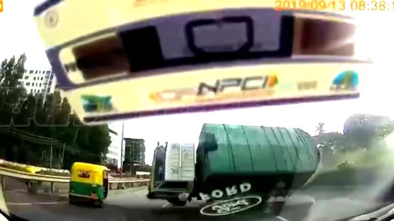ഓടിക്കൊണ്ടിരുന്ന കാറിനു മുകളിലേക്ക് കൂറ്റന് ട്രക്ക് മറിഞ്ഞു. അപകടത്തില് യാത്രികന് ഒരു പോറല്പോലുമേല്ക്കാതെ രക്ഷപ്പെട്ടു. കഴിഞ്ഞദിവസം ബംഗളൂരുവില് നടന്ന ഈ ഞെട്ടിപ്പിക്കുന്ന അപകടത്തിന്റെ വീഡിയോ ദൃശ്യങ്ങള് സോഷ്യല് മീഡിയയില് വൈറലാണ്.