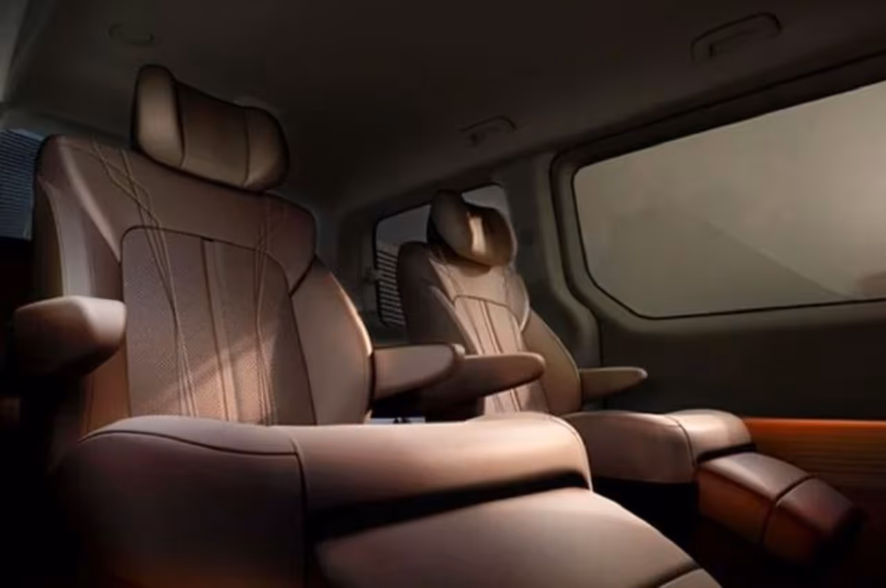 11 സീറ്റർ കോൺഫിഗറേഷനിൽ വരെ ലഭ്യമായ ഹ്യുണ്ടേയ് സ്റ്റാറിയയുടെ 7 സീറ്റർ പതിപ്പാണ് ഏറ്റവും പ്രീമിയം. പ്രീമിയം പതിപ്പിൽ രണ്ടാം നിരയിൽ ബക്കറ്റ് സീറ്റുകളാണ്. കൂടാതെ, കാലുകൾ വയ്ക്കാൻ പ്രത്യേകം സീറ്റ് എക്സ്റ്റൻഡറുമുണ്ട്. സ്റ്റേറിയയുടെ ഇന്റീരിയർ ഒരു കപ്പലിന്റെ കോക്ക്പിറ്റ് അനുസ്മരിപ്പിക്കും വിധമാണ് ഒരുക്കിയിരിക്കുന്നത് എന്നാണ് ഹ്യുണ്ടേയ്യുടെ അവകാശവാദം. മുൻ നിരയിലെ സീറ്റുകൾക്കിടയിൽ ടണൽ ഇല്ല എന്നാണ് പ്രേത്യേകത. ഗിയർബോക്സ് ലിവർ ഡാഷ്ബോർഡിന്റെ അടിഭാഗത്തായി ക്രമീകരിച്ചത് മൂലമാണിത്. ലേയറുകൾ ആയി ക്രമീകരിച്ചിരിക്കുന്ന ഡാഷ്ബോർഡിന്റെ ആകർഷണം ഒത്തനടുക്കുള്ള 10.25-ഇഞ്ച് ഫ്ലോട്ടിങ് ടച്ച്സ്ക്രീൻ ആണ്. ഡ്യുവൽ ടോൺ, അപ്ഹോൾസ്റ്ററി ആംബിയന്റ് ലൈറ്റിങ് എന്നിവയും ഹ്യുണ്ടേയ് സ്റ്റാറിയയിലുണ്ട്.
