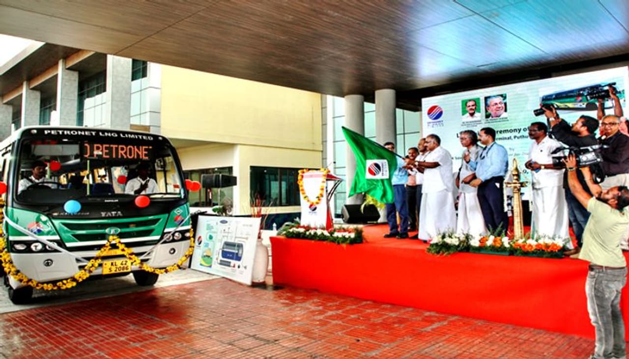 രാജ്യത്തെ ആദ്യത്തെ ദ്രവീകൃത പ്രകൃതിവാതകം (എൽഎൻജി) ഇന്ധനമായുള്ള ബസുകളുടെ രണ്ട് യൂണിറ്റുകൾ കേരളത്തിന്