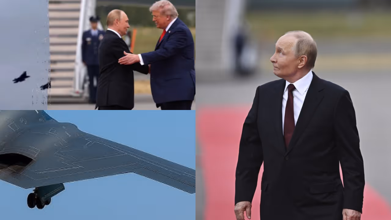 പത്തുവര്ഷത്തിനിടെ ആദ്യമായി അമേരിക്കയില് കാലുകുത്തിയ പുടിനെ, ട്രംപ് B-2 സ്റ്റെൽത്ത് ബോംബറുകളുടെയും എഫ്-22 യുദ്ധവിമാനങ്ങളുടെയും അകമ്പടിയോടെ സ്വീകരിച്ചു.