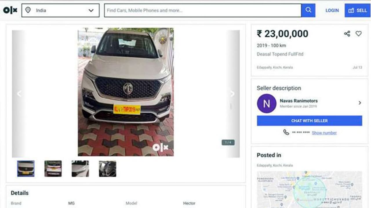 കൊച്ചി എടപ്പള്ളി സ്വദേശിയുടെ പേരിലുള്ള ഒഎല്എക്സ് അക്കൗണ്ടിലാണ് പുത്തന് ഹെക്ടര് വില്പനയ്ക്കുള്ളത്. ഇരുപത്തിമൂന്ന് ലക്ഷം രൂപയാണ് വില. 2019 മോഡല് ഡീസല് ഷാര്പ് ഹെക്ടറാണ് വില്പനയ്ക്ക് വച്ചിരിക്കുന്നത്.