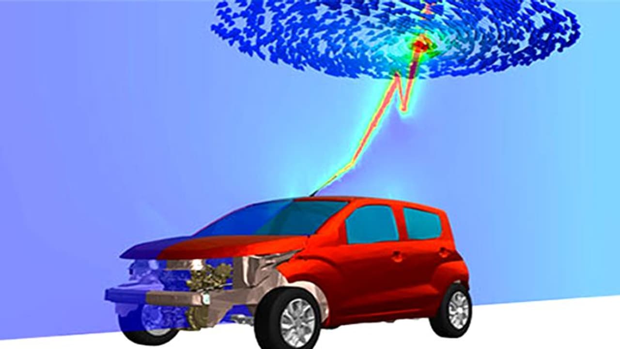 തീഗോളം പോലെ ഇടിവെട്ട് കാറിൽ പതിക്കുന്നത് വിഡിയോയില് കാണാം. മിന്നലില് എസ്യുവിയുടെ ബാറ്ററി കത്തിപോയി. വാഹനത്തിലുള്ളവർ പരിക്കേല്ക്കാതെ രക്ഷപ്പെട്ടന്നാണ് റിപ്പോര്ട്ടുകള്.