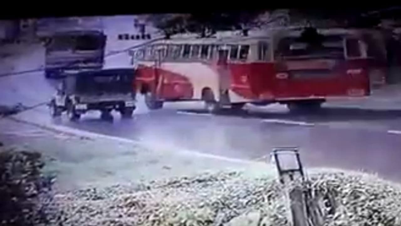 അപകടകരമായ വേഗത്തിൽ ജീപ്പിനെ മറികടക്കുകയാണ് ബസ്. അതിനിടെ വളവിൽ മെയിന് റോഡിലേക്ക് കയറിവരാന് ശ്രമിക്കുകയാണ് ഒരു കാര്. മറ്റൊരു കാര് കൃത്യമായി വളവിലെ ബ്ലൈന്ഡ് സ്പോട്ടില് തന്നെ അപകടകരമായി നിലയില് പാര്ക്കും ചെയ്തിരിക്കുന്നു. സകല റോഡുനിയമങ്ങളും കാറ്റില്പ്പറത്തി പാഞ്ഞു വരുന്ന ബസില് ഇടിക്കാതിരിക്കാന് ലോറി ഡ്രൈവര് വണ്ടി ഇടത്തേക്ക് വെട്ടിക്കുന്നു. ലോറിക്ക് വേഗം കുറവായിരുന്നതിനാലും സമയോചിതമായി വെട്ടിച്ചതിനാലും ബസിലെ നിരവധിയാളുകളുടെ ജീവനാണ് ലോറി ഡ്രൈവര് രക്ഷിച്ചതെന്ന് വീഡിയോ വ്യക്തമാക്കുന്നു. പക്ഷേ ഇടതുവശത്ത് ഒട്ടും സ്ഥലമില്ലാത്തതിനാല് അപകടകരമായി പാര്ക്ക് ചെയ്തിരിക്കുന്ന കാറിന്റെ പിന്നില് ഇടിച്ചാണ് ലോറി നിന്നത്.