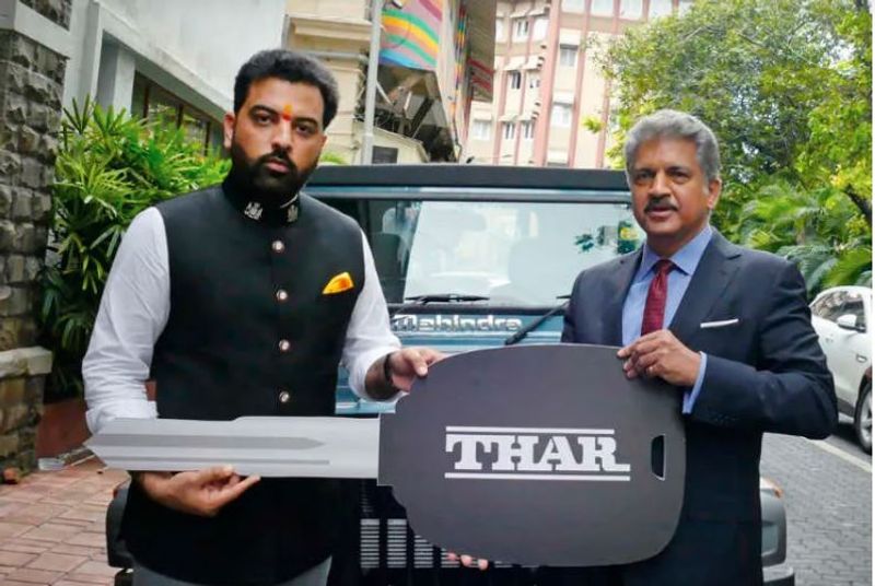 മഹീന്ദ്രയുടെ ജനപ്രിയവാഹനം ഥാറിന്റെ ലിമിറ്റഡ് എഡിഷന് മോഡലായ ഥാര് 700 സ്വന്തമാക്കി മഹാറാണ പ്രതാപിന്റെ പിന്തുടർച്ചക്കാരനായ ഉദയ്പുര് രാജകുമാരന് ലക്ഷ്യരാജ് സിങ്ങ് മേവാര്. രാജസ്ഥാനിലെ മഹീന്ദ്ര ഷോറൂമില് വച്ച് മഹീന്ദ്ര ഗ്രൂപ്പ് ചെയര്മാന് ആനന്ദ് മഹീന്ദ്ര തന്നെയാണ് രാജകുമാരന് പുതിയ വാഹനത്തിന്റെ താക്കോല് കൈമാറിയത്.