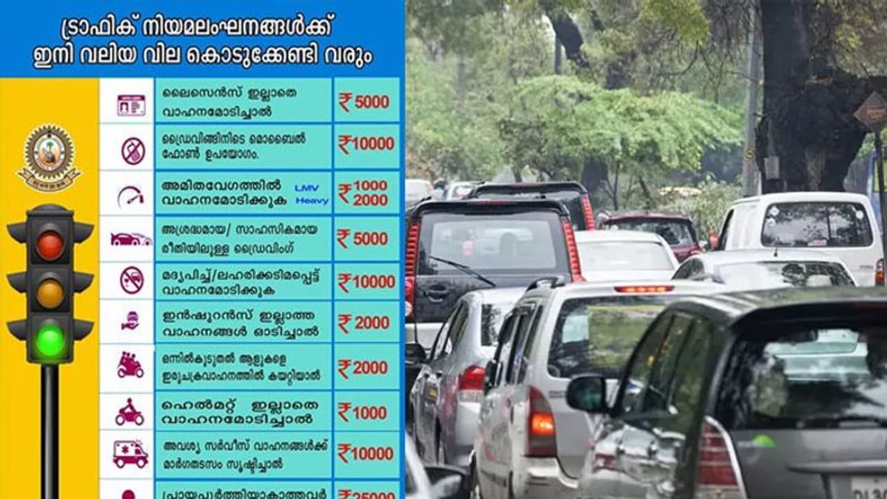 വാഹനം ഓടിക്കുന്നതിനിടെ മൊബൈല് ഫോണ് ഉപയോഗിച്ചാല് 5000 രൂപയാണ് പിഴ. നിലവില് ഇത് 1000 രൂപയാണ്. മദ്യപിച്ച് വാഹനം ഓടിച്ചാല് പിഴ 10000 രൂപയാണ്. സീറ്റ് ബെല്റ്റ് ധരിച്ചില്ലെങ്കിൽ നിലവിൽ 100 രൂപയാണ് പിഴയെങ്കിൽ പുതിയ നിയമപ്രകാരം അത് ആയിരം രൂപയാണ്. അമിത വേഗത്തിന്റെ പിഴ 1000-2000 നിരക്കിലായിരിക്കും. നിലവില് ഇത് 400 രൂപയാണ്. അപകടപരമായ ഡ്രൈവിംഗിന് പിഴ പുതിയ നിയമത്തില് 5000 രൂപയായിരിക്കും. ട്രാഫിക്ക് നിയമലംഘനത്തിന് പിഴ 500 രൂപയായിരിക്കും.