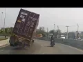 ഓവര്ടേക്ക് ചെയ്യാന് ശ്രമിക്കുന്ന ബൈക്ക് യാത്രികന്റെ സമീപത്തേക്ക് ചെരിഞ്ഞു വീഴുന്ന പടുകൂറ്റന് കണ്ടെയിനര് ലോറി.