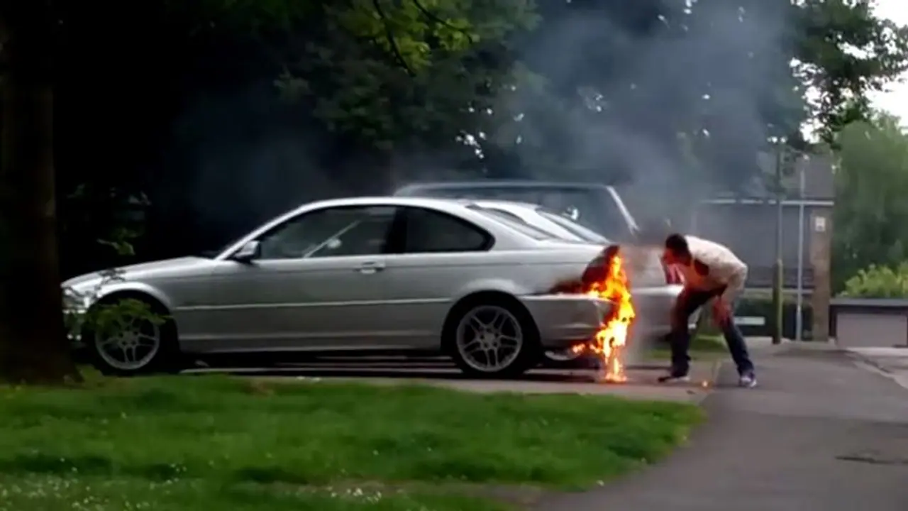 തന്റെ കാറിലെ തീ ഊതി കെടുത്താന് ശ്രമിക്കുന്ന കാറുടമയുടെ വീഡിയോ സോഷ്യല് മീഡിയയില് വൈറല്