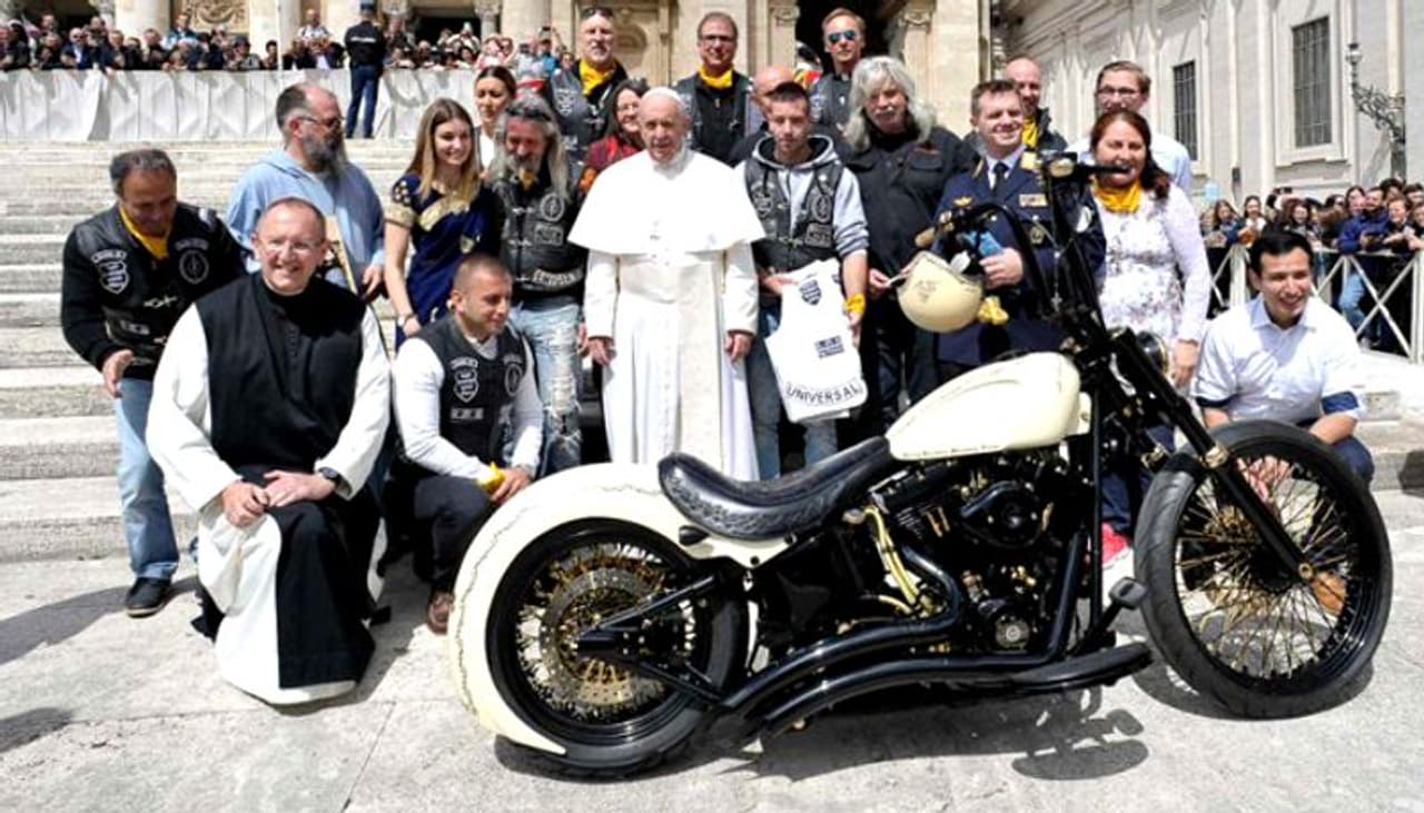 2019 ജൂലൈയില് സെന്റ് പീറ്റേഴ്സ് സ്ക്വയറില് നടന്ന ചടങ്ങിലാണ് അമേരിക്കന് നിര്മ്മാതാക്കളായ ഹാര്ലിയുടെ ഏറ്റവും പുതിയ മോഡലായ പിയര്സെന്റ് വൈറ്റ് , ഫ്രാന്സിസ് പാപ്പയ്ക്ക് സമ്മാനമായി ലഭിച്ചത്. ബവേറിയന് ആസ്ഥാനമായ ഹാര്ലി ഡേവിഡ്സണ് ഡീലര് വോര്സ്ബര്ഗ് വില്ലേജാണ് 'ജീസസ് ബൈക്കേഴ്സു'മായി ചേര്ന്ന് പാപ്പയ്ക്കുവേണ്ടി ഈ ബൈക്ക് രൂപകല്പ്പന ചെയ്തത്. മുള്കിരീടത്തിന്റെ പകര്പ്പും സ്വര്ണം പൂശിയ കുരിശുമാണ് ഈ ബൈക്കിന്റെ സവിശേഷത.