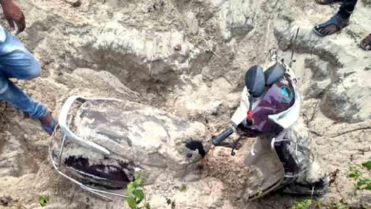 മോഷണം പോയ സ്കൂട്ടര് സ്വകാര്യ വ്യക്തിയുടെ വീട്ടുപറമ്പിലെ മണ്ണിനടിയില് കുഴിച്ചിട്ട നിലയില്