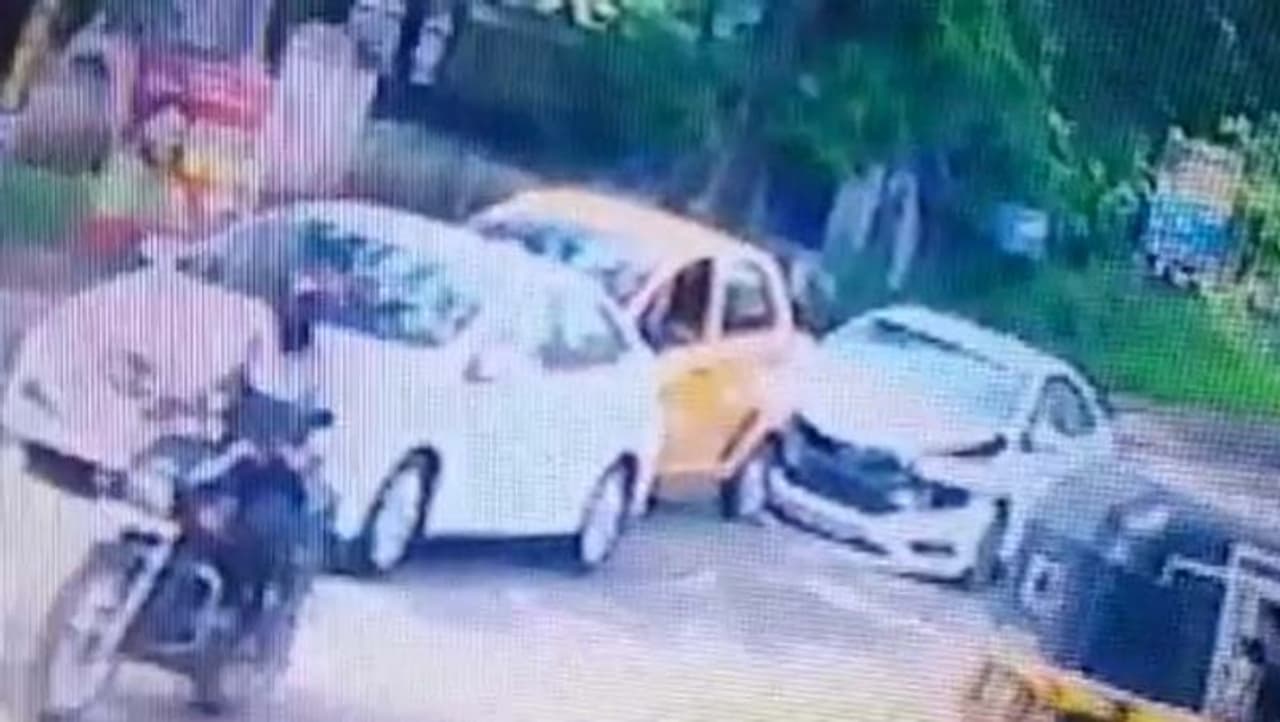 മുന്നില് പോയ ഹ്യുണ്ടായി സാൻട്രോയുടെ ഡ്രൈവര് ഒരു സ്പീഡ് ബ്രേക്കര് കാണുന്നതാണ് സംഭവങ്ങളുടെ തുടക്കം. അതോടെ സാന്ട്രോ വേഗത കുറയ്ക്കുന്നു. സാന്ട്രോയുടെ തൊട്ടുപിന്നിലുള്ള വെളുത്ത നിറമുള്ള ഹോണ്ട സിറ്റിയും ഈ സമയം വേഗത കുറയ്ക്കുന്നു. അതേസമയം നാനോയുടെ തൊട്ടു പിന്നിലുള്ള രണ്ടാമത്തെ വെളുത്ത നിറമുള്ള ഹോണ്ട സിറ്റിയാവട്ടെ വേഗത കുറയ്ക്കുന്നതിനുപകരം നേരെ നാനോയുടെ പിന്നില് ചെന്നിടിക്കുന്നു. ഇടിയുടെ ആഘാതത്തില് മുന്നോട്ട് കുതിച്ച നാനോ തൊട്ടു മുന്നിലുണ്ടായിരുന്ന ഹോണ്ട സിറ്റിയുടെ പിൻഭാഗത്തും ചെന്നിടിക്കുകയും ചെയ്യുന്നു.