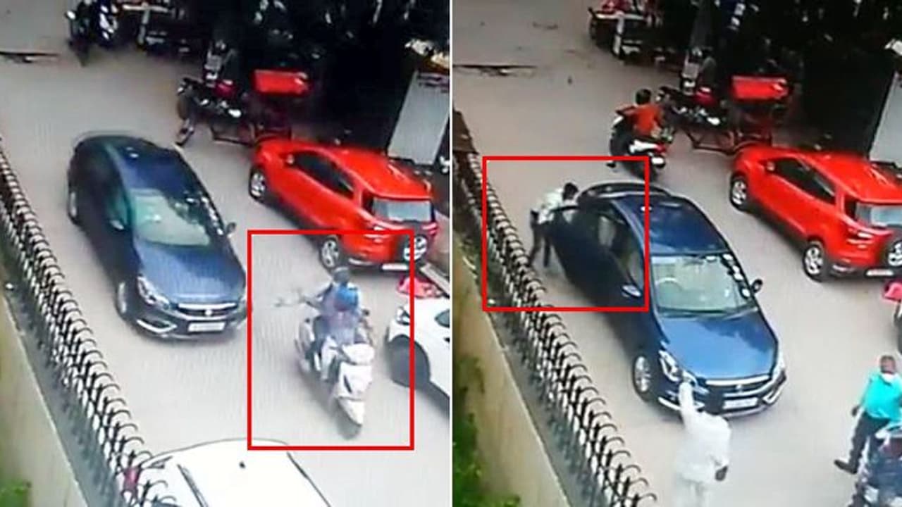 തുടര്ന്ന് മൂന്നാമത്തെ സ്കൂട്ടറില് എത്തിയ രണ്ടുപേര് കാര് ഡ്രൈവറോട് എന്തൊക്കെയോ സംസാരിക്കുന്നതും അയാളുടെ ശ്രദ്ധ പിന്നെയും മാറ്റുന്നതും കാണാം. ഇതിനിടെ മോഷ്ടാവ് കാറിന്റെ പിന് സീറ്റ് ലക്ഷ്യമാക്കി നടക്കുന്നതും രണ്ടാമത്തെ സ്കൂട്ടര് തിരിച്ചെത്തി രക്ഷപ്പെടലിനായി തയ്യാറായി നില്ക്കുന്നതും വീഡിയോയില് വ്യക്തമാണ്. കാറിന്റെ വാതിൽ തുറന്ന മോഷ്ടാവ് ബാഗുമായി നിര്ത്തിയിട്ട ഈ സ്കൂട്ടറില് കയറി രക്ഷപ്പെടുന്നു.