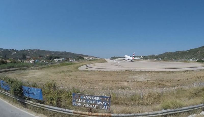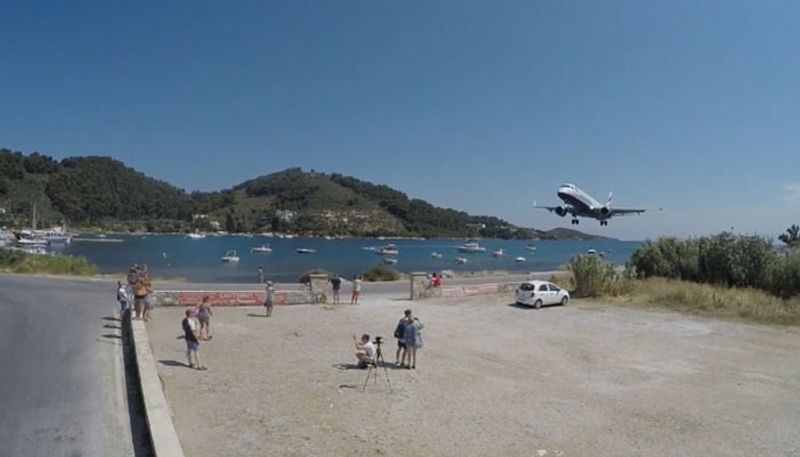 ബീച്ചിന് തൊട്ടടുത്തുള്ള പടിയില് കയറിയവരൊക്കെ വിമാനം കടന്നുപോയപ്പോഴുണ്ടായ ശക്തമായ കാറ്റില് നിലത്തേക്ക് വീണു. ഗ്രീസിലെ സ്കിയാത്തോസ് വിമാനത്താവളത്തില് നിന്നുള്ളതാണ് കാഴ്ച. കടലിനോട് ചേര്ന്നുള്ള വിമാനത്താവളത്തിന്റെ റണ്വേയും കടലിനും ഇടയില് ഏതാനും മീറ്ററുകള് മാത്രമാണുള്ളത്.