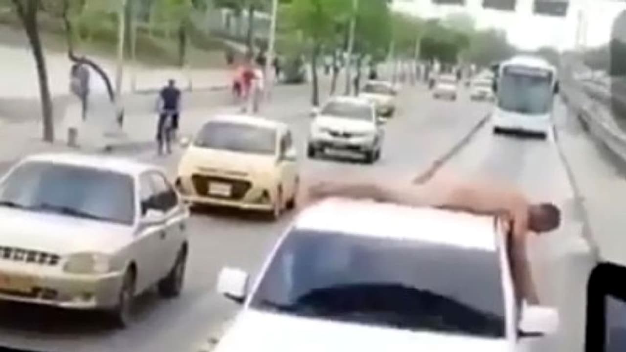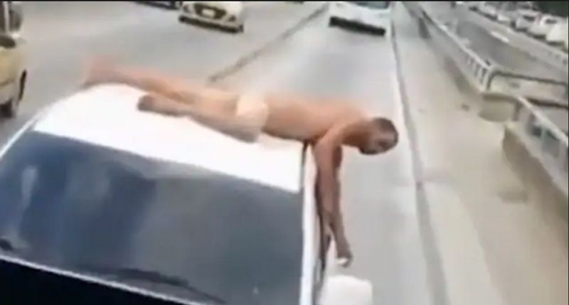 ഭാര്യയുടെ നിബന്ധന അക്ഷരംപ്രതി അനുസരിച്ച വര്ഗാസ് എസ്യുവിയുടെ മുകളില് കയറിക്കിടന്നു, മുഖം ഒരു തൂവാല കൊണ്ട് മറച്ചുംപിടിച്ചു. എന്നാല് വാഹനം മുന്നോട്ടു നീങ്ങിത്തുടങ്ങിയതോടെ ഈ തൂവാല നഷ്ടമായി. വിചിത്രമായ യാത്ര കണ്ട് തടിച്ചുകൂടിയ ജനങ്ങള് ദൃശ്യങ്ങള് പകര്ത്തുകയും ചെയ്തു. സംഭവത്തിന്റെ വിവിധ തരത്തിലുള്ള നിരവധി വീഡിയോ ദൃശ്യങ്ങളാണ് ഇപ്പോള് സോഷ്യല്മീഡിയയിലും യൂടൂബിലുമൊക്കെ പ്രചരിക്കുന്നത്. മാനം പോയെന്നു മാത്രമല്ല കേസിലെ പ്രതിയുമായി വര്ഗാസ്.