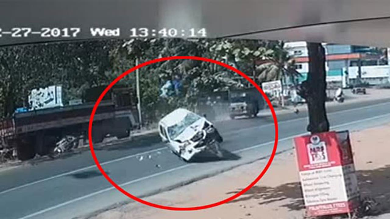 വെള്ള മാരുതി ആള്ട്ടോ ഭീകരാന്തരീക്ഷം സൃഷ്ടിച്ച് പാഞ്ഞു വരുന്നതും ഇരുചക്രവാഹനങ്ങളെ ഇടിച്ചു തെറിപ്പിക്കുന്നതും വീഡിയോയിലുണ്ട്. തുടര്ന്ന് തലികീഴായി മറിഞ്ഞ കാര് റോഡിരികിലെ പുക പരിശോധന കേന്ദ്രത്തിനു മുന്നില് നിര്ത്തിയിട്ടിരുന്ന ഓട്ടോ റിക്ഷയില് ഇടിച്ചും നില്ക്കുന്നതും കാണാം.