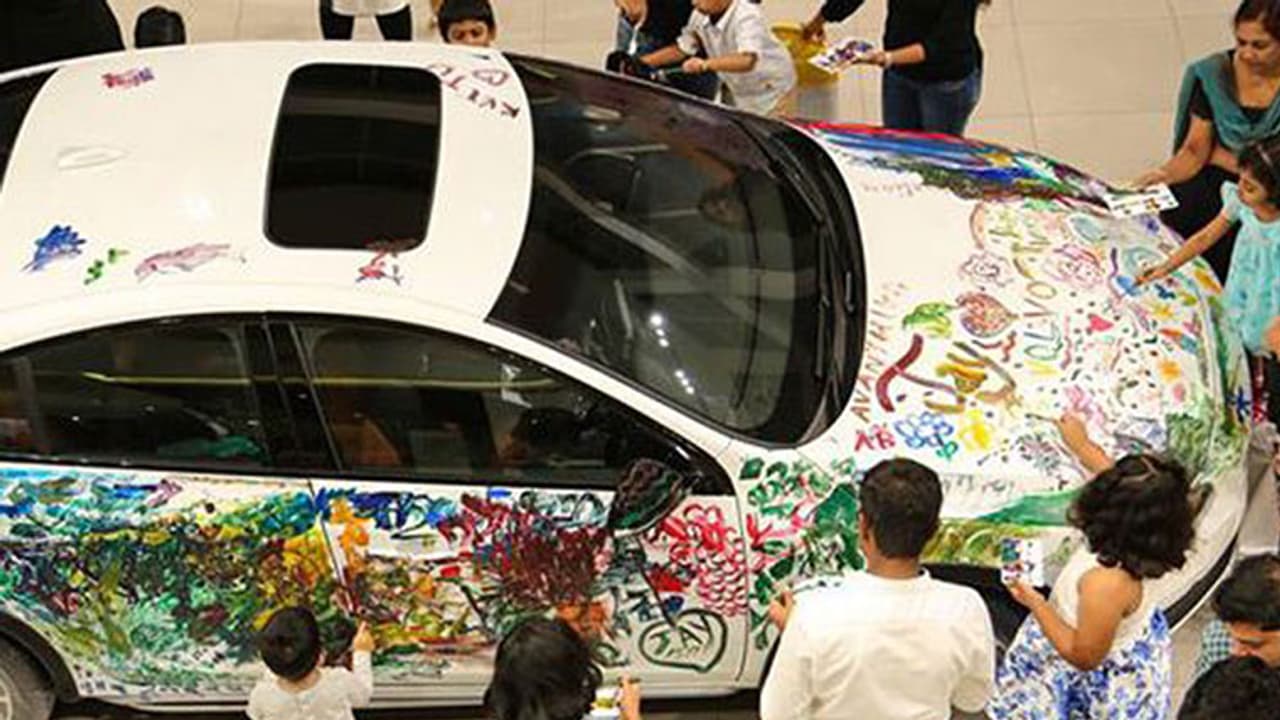45 ലക്ഷം രൂപ വിലവരുന്ന എസ് 60 ക്രോസ് കൺട്രി ആഡംബരക്കാര് കുട്ടികൾക്ക് ചിത്രം വരച്ച് കളിക്കാൻ നല്കി കൊച്ചിയിലെ വോൾവോ അധികൃതർ. ചിൽഡ്രൻസ് ബിനാലെ എന്നുപേരിട്ട പരിപാടിക്കായാണ് കാര് നല്കിയത്.