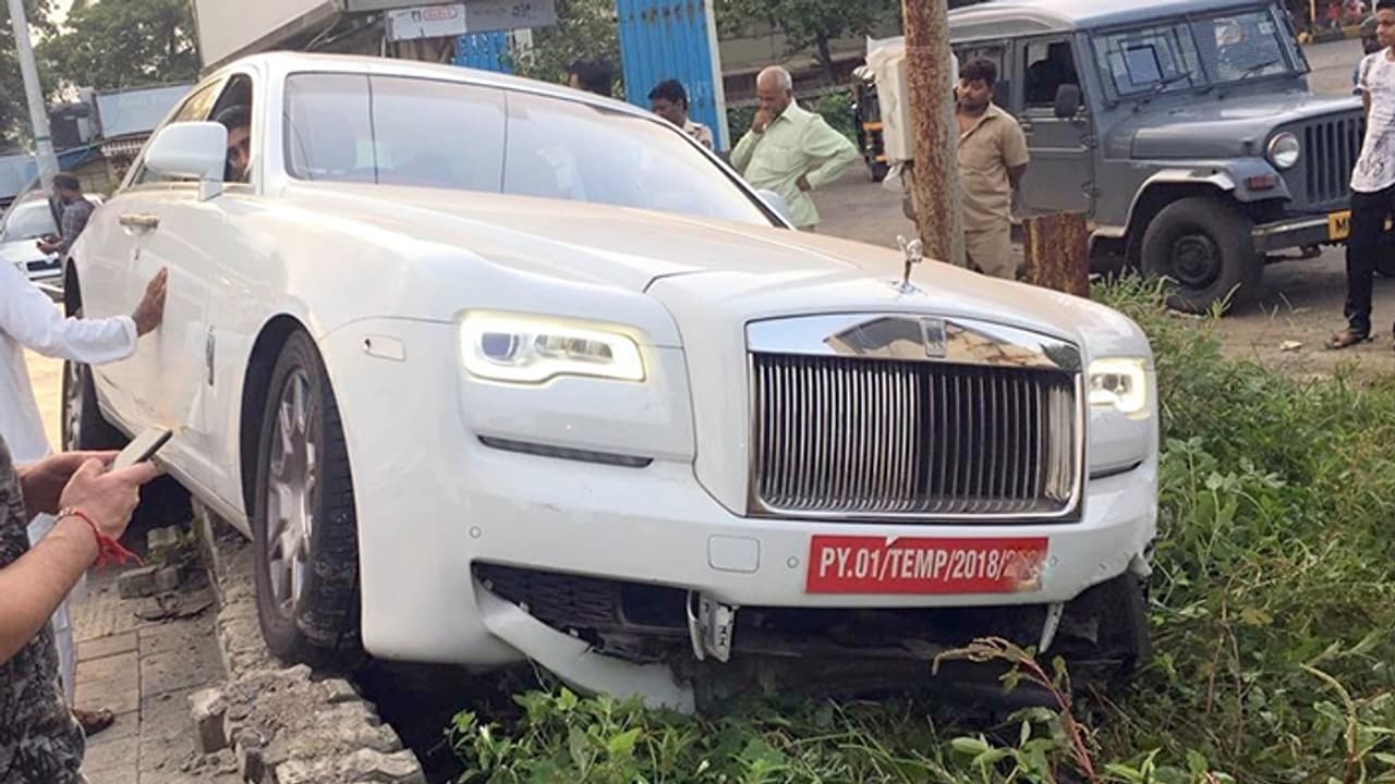 ഏഴ് കോടി രൂപയോളം വില വരുന്ന റോള്സ് റോയ്സ് ഗോസ്റ്റാണ് ജുഹുവിലെ റോഡില് അപകടത്തില്പ്പെട്ടത്. നിയന്ത്രണം വിട്ട വാഹനം ഫൂട്ട് പാത്തിലേക്ക് ഇടിച്ചുകയറുകയായിരുന്നു. താത്കാലിക റെജിസ്ട്രേഷനിലുള്ള വാഹനം പുതുച്ചേരിയിലേക്ക് കൊണ്ടുപോകുന്നതിനിടെയാണ് അപകടം. സംഭവത്തില് ആര്ക്കും പരിക്കേറ്റിട്ടില്ലെങ്കിലും വാഹനത്തിന്റെ മുന് ബംബര് സാരമായി തകര്ന്നിട്ടുണ്ട്.