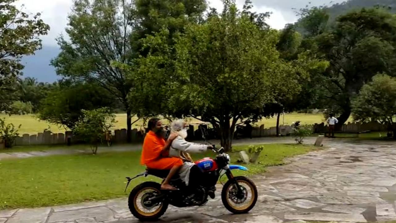 യോഗഗുരുക്കന്മാരും സന്യാസിമാരുമായ സദ്ഗുരുവും ബാബ രാംദേവും സൂപ്പര് ബൈക്കില് പറക്കുന്ന വീഡിയോ ദൃശ്യങ്ങള് സോഷ്യല്മീഡിയയില് വൈറലാകുന്നു. സദ്ഗുരു ഓടിക്കുന്ന ഡ്യുക്കാറ്റി സ്ക്രാംബ്ളർ ബൈക്കിന്റെ പുറകിലിരുന്നാണ് ബാബ രാംദേവിന്റെ യാത്ര. ശിഷ്യന്മാരുടെ അകമ്പടിയോടെ വഴിയരികിൽ നിൽക്കുന്നവരെയെല്ലാം അഭിവാദ്യം ചെയ്താണ് ഇരുവരുടെയും യാത്ര.
