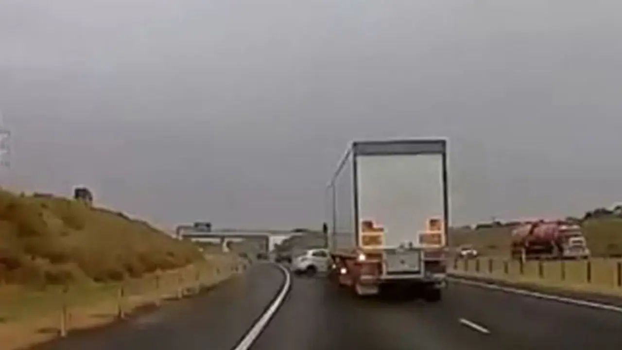ഓസ്ട്രേലിയയിലെ ജീലോങ് റിങ് റോഡില് നിന്നുള്ളതാണ് ദൃശ്യങ്ങള്. കാറിന് കാര്യമായ കേടുപാടുകള് ഉണ്ടായെങ്കിലും കാറില് ഉണ്ടായിരുന്നവര്ക്ക് പരിക്കില്ല.
