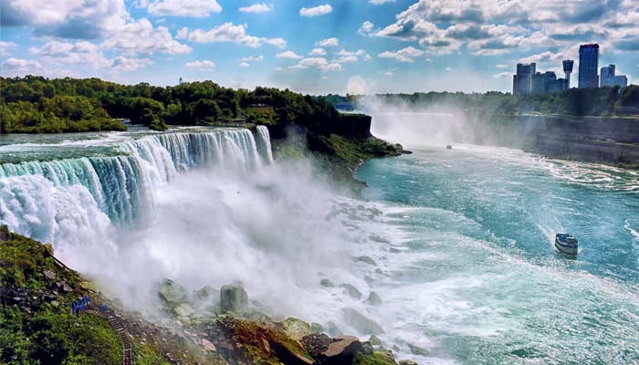 ലോകത്തെ ഏറ്റവും മനോഹരമായ വെള്ളച്ചാട്ടം എന്ന് വിശേഷിപ്പിക്കപ്പെട്ടതാണ് നയാഗ്രാ നദിയിലെ വെള്ളച്ചാട്ടം. അമേരിക്ക-കാനഡ അതിർത്തിയിലാണ് ഈ വെള്ളച്ചാട്ടം സ്ഥിതി ചെയ്യുന്നത്. അമേരിക്കൻ ഫാൾസ്, ബ്രൈഡൽ വെയ്ൽ ഫാൾസ്, കനേഡിയൻ ഹോഴ്സ് ഷൂ ഫാൾസ് എന്നീ മൂന്നു വെള്ളച്ചാട്ടങ്ങൾ ഒരുമിച്ച് ചേർന്നാണ് നയാഗ്ര രൂപംകൊള്ളുന്നത്. അമേരിക്കയിൽ നിന്നും കാനഡയിലേക്കു പതിക്കുന്നതിനാൽ കാനഡയിൽ നിന്നുമാണ് നയാഗ്രയുടെ ഭംഗി പൂർണമായും ആസ്വദിക്കാൻ കഴിയുക. മൂന്നരകോടിക്ക് മേൽ ആളുകൾ ഒരു വർഷം നയാഗ്ര വെള്ളച്ചാട്ടം സന്ദർശിക്കാൻ എത്തുന്നുവെന്നാണ് കണക്ക്.