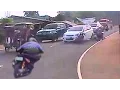 വളവില് വച്ച് ഓവർടേക്ക് ചെയ്ത് വന്ന കാറില് ബൈക്ക് ഇടിക്കുന്നതിന് തൊട്ടുമുമ്പ് യുവാവ് ബൈക്കിൽ നിന്ന് ചാടി രക്ഷപ്പെടുന്നതാണ് വീഡിയോയില്. കാറിലിടിക്കുന്ന ബൈക്ക് തെറിച്ചു പോകുന്നതും കാണാം. ബൈക്കില് നിന്നും ചാടിയില്ലായിരുന്നെങ്കില് യുവാവിന് ഗുരുതര പരിക്കേല്ക്കുകയോ ജീവന് തന്നെ നഷ്ടമാകുകയോ ചെയ്യുമായിരുന്നുവെന്ന് ഉറപ്പ്.