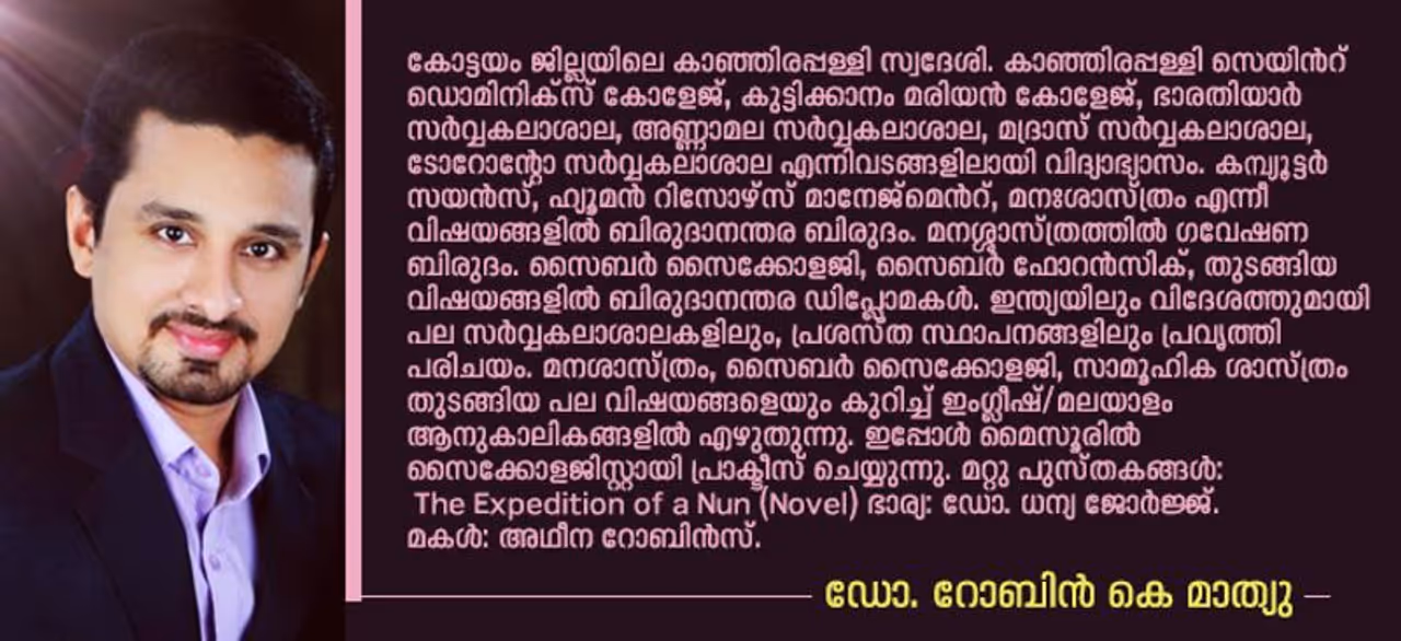 മനസ്സും പെരുമാറ്റവും, തലച്ചോറിന്റെ ചില കള്ളക്കളികള്, മാനസിക വ്യാപാരങ്ങളുടെ ശരിയായ വിശകലനങ്ങള് ഇവയെ ഒക്കെ സംബന്ധിക്കുന്ന ധാരണകള് വിപുലീകരിക്കാന് ഓരോ മലയാളിയും വായിച്ചിരിക്കേണ്ട പുസ്തകം. ഉന്നതപഠനംവഴി നേടിയ അവഗാഹവും ഇന്ത്യയ്ക്കു പുറത്തുള്ള ക്ലിനിക്കുകളില്നിന്നുവരെ നേടിയ പ്രായോഗിക പരിചയവും ഡോ. റോബിന് കെ. മാത്യു ലളിതവും നേരിട്ടുള്ളതുമായ ആഖ്യാനത്തിലൂടെ വെളിവാക്കുന്നു എന്നത് ശാസ്ത്രമെഴുതാന് ആളെ തേടേണ്ടിവരുന്ന ഇക്കാലത്ത് വളരെ സംഗതമാണ്. മലയാളിയുടെ സാമൂഹിക രാഷ്ട്രീയ വീക്ഷണങ്ങള്ക്ക് മനഃശാസ്ത്രപരമായ സാധൂകരണം നല്കുകയും തെറ്റായ നിഗമനങ്ങളുടെ തിരുത്തല് അത്യാവശ്യമെന്ന് ധരിപ്പിക്കുകയും ചെയ്യുന്നു ഈ പുസ്തകത്തിലെ പല ലേഖനങ്ങളും. ആഴത്തിലുള്ള അറിവുകള് സ്വരുക്കൂട്ടിയെടുത്തിരിക്കുക മാത്രമല്ല, വ്യത്യസ്തവും വിശാലവുമായ വിഷയങ്ങള് കൈകാര്യം ചെയ്തിട്ടുമുണ്ട് ഈ ലേഖനശേഖരത്തില്- എതിരന് കതിരവന്.