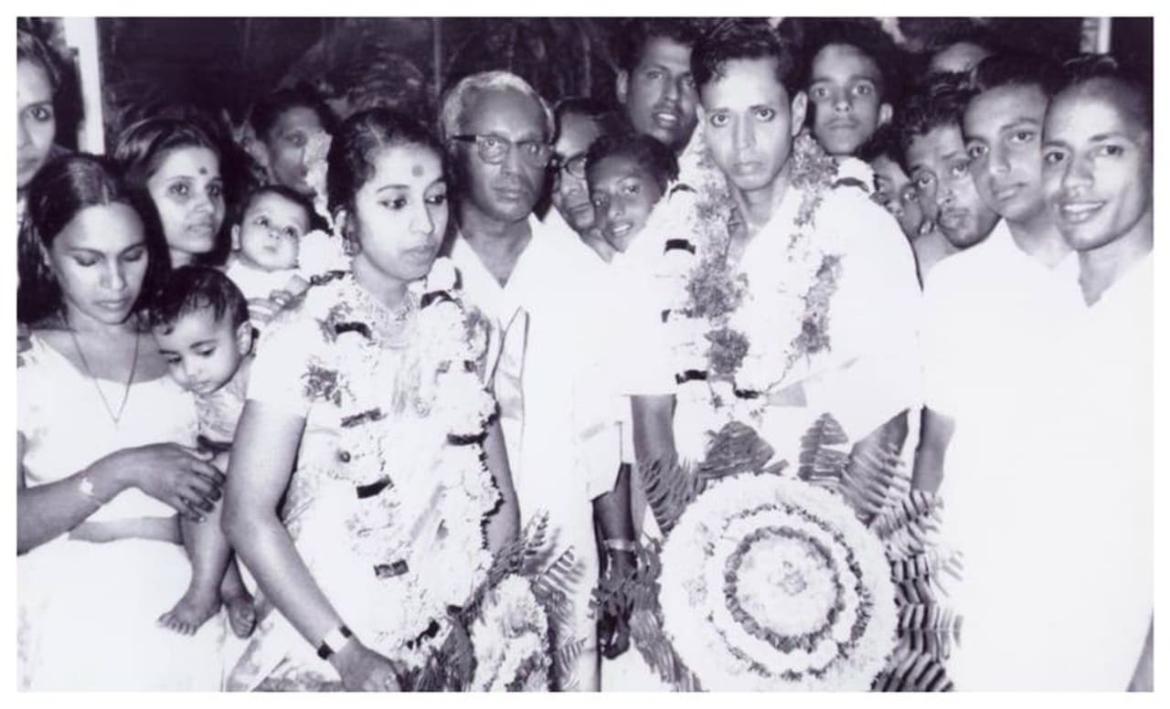 വിവാഹാഘോഷത്തില് പങ്കുചേരാനെത്തിയ ഇ എം എസിനൊപ്പം എസ്പി നമ്പൂതിരിയും പത്നി ശാന്തയും