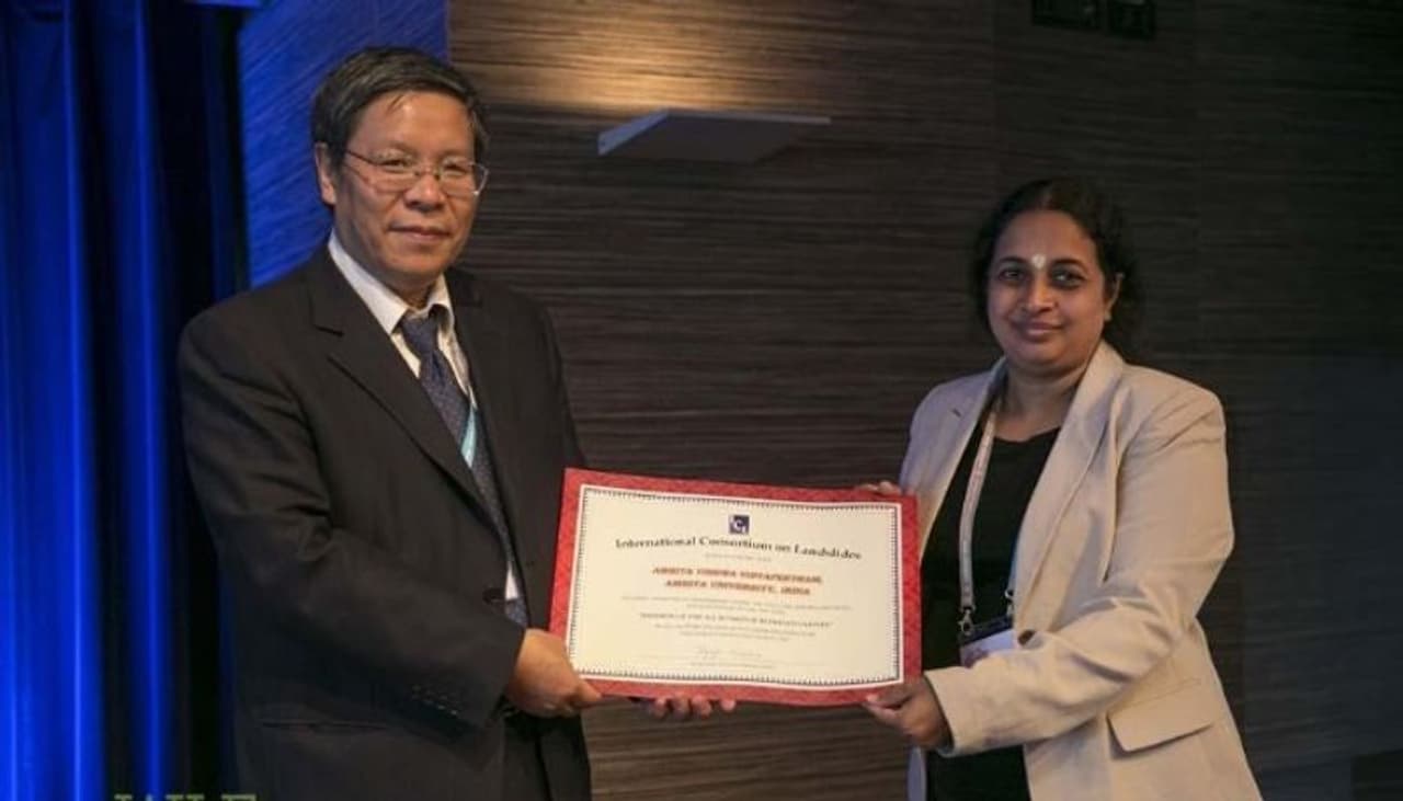 എർത്ത് സയൻസ്, കമ്യൂണിക്കേഷൻ ആൻഡ് നെറ്റ്വർക്കിംഗ്, അനലോഗ്-ഡിജിറ്റൽ സർക്യൂട്ട്സ് തുടങ്ങിയ വിഭാഗങ്ങളിൽനിന്നുള്ള സങ്കേതങ്ങൾ കോർത്തിണക്കിയ 'വയർലെസ് സെൻസർ നെറ്റ്വർക്ക് ' മുൻപ് സൂചിപ്പിച്ച ഗവേഷണ മികവിനുള്ള ഉദാഹരണങ്ങളിലൊന്നാണ്. മണ്ണിടിച്ചിൽ മുൻകൂട്ടി കണ്ടെത്താൻ സഹായിക്കുന്ന ചെലവ് കുറഞ്ഞ സംവിധാനമാണിത്. മണ്ണിടിച്ചിലുണ്ടാകുന്നതിന് 24 മണിക്കൂർ മുമ്പേതന്നെ അത് തിരിച്ചറിയാൻ ഈ ഉപകരണത്തിലൂടെ സാധിക്കും. ഈ ഉപകരണത്തിന് യു.എസ് പേറ്റന്റും ലഭിച്ചിട്ടുണ്ട്. അതു മാത്രമല്ല, ഡിസാസ്റ്റർ റിസ്ക് റിഡക്ഷന്റെ കാര്യത്തിൽ 'വേൾഡ് സെന്റർ ഓഫ് എക്സലൻസ് 'എന്ന അംഗീകാരവും ഈ ഉപകരണത്തിന്റെ കണ്ടുപിടിത്തത്തിലൂടെ അമൃത സർവകലാശാലയ്ക്ക് ലഭിച്ചു.