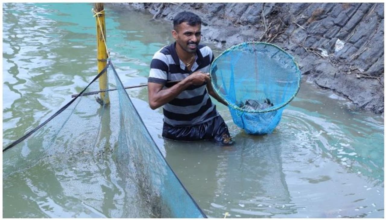 കണ്ണൂര്: ആറു വര്ഷം ഇന്ത്യന് സൈന്യത്തില് സേവനമനുഷ്ഠിച്ച (Dinil Prasad) ദിനില് ജോലി രാജിവച്ച് നാട്ടില് മത്സ്യ കര്ഷകന് ആയപ്പോള് പലരും പലതും പറഞ്ഞു. എന്നാല് മത്സ്യ കൃഷിയിലൂടെ മികച്ച വരുമാനവും വിജയവും കൈവരിച്ച പി.എം.ദിനില് പ്രസാദിനെ മികച്ച മത്സ്യ തൊഴിലാളിക്കുള്ള സംസ്ഥാന സര്ക്കാരിന്റെ തൊഴില് ശ്രേഷ്ഠ പുരസ്കാരവും തേടിയെത്തിയിരിക്കുകയാണ്. കഠിനമായ തിരഞ്ഞെടുപ്പ് പ്രക്രിയയിലൂടെ 2012 ലാണ് കണ്ണൂര് സ്വദേശിയായ ദിനില് സൈന്യത്തില് ചേര്ന്നത്. ആറു വര്ഷം ജോലി ചെയ്തതിന് ശേഷം ജോലി രാജിവച്ച് ഇറങ്ങി. നല്ല ജലാശയങ്ങളും മഴയും കാലാവസ്ഥയുമൊക്കെ ലഭ്യമായ കേരളീയര് കഴിക്കുന്നത് മറ്റു സംസ്ഥാനങ്ങളില് നിന്നു വരുന്ന മത്സ്യം എന്ന രീതിക്ക് ഒരു മാറ്റം വേണമെന്ന ചിന്തയില് നിന്നാണ് കൂടു മത്സ്യകൃഷി ആരംഭിക്കുന്നത്.