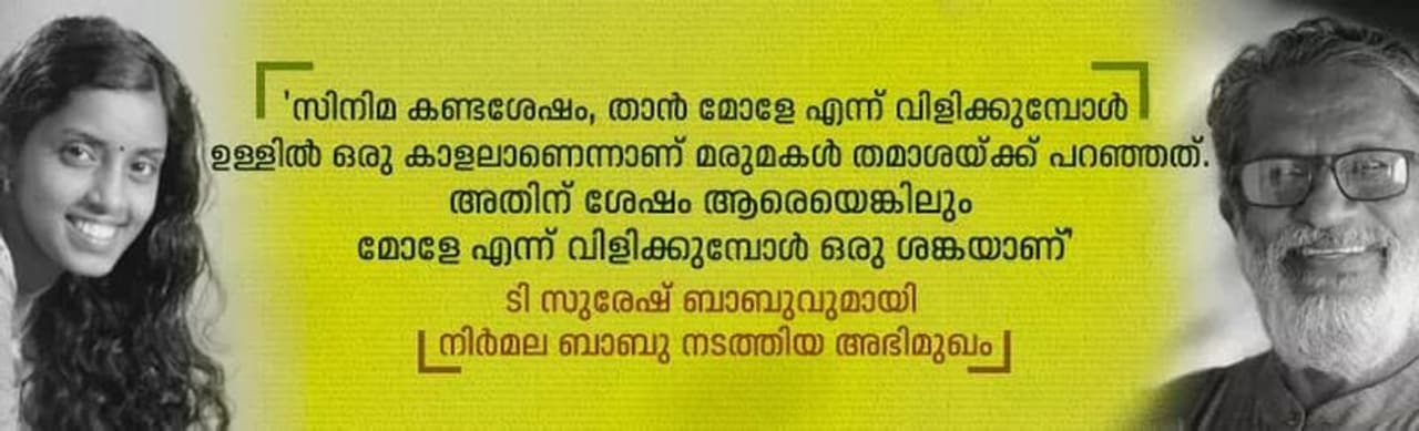 "മോളേ... ചോറ് മാത്രം അടുപ്പിൽത്തന്നെ വയ്ക്കണേ", "വാഷിങ് മെഷീനിലിട്ടാൽ തുണി പൊടിഞ്ഞു പോവില്ലേ മോളേ..', "ഞാന് പല്ല് തേച്ചിട്ടില്ല മോളേ, എനിക്ക് ബ്രഷ് കിട്ടീട്ടില്ല...". സമൂഹമാധ്യമങ്ങളില് നിറഞ്ഞു നില്ക്കുന്ന, ജിയോ ബേബി സംവിധാനം ചെയ്ത "ദി ഗ്രേറ്റ് ഇന്ത്യന് കിച്ചണ്' എന്ന സിനിമയിലെ നായകന്റെ അച്ഛന് കഥാപാത്രത്തിന്റെ ഡയലോഗുകൾ ആണിത്. 'മോളേ' എന്ന് നീട്ടി വിളിച്ച് ചിരിച്ചുകൊണ്ട് കഴുത്തറുക്കുന്ന അമ്മായിയച്ഛനെ തിരയുകയാണ് സോഷ്യല് മീഡിയ. ഈ കക്ഷിയെ നേരിട്ടു കണ്ടിരുന്നെങ്കില് 'ഒന്നു പൊട്ടിക്കാമായിരുന്നു' എന്ന മട്ടില് പോലുമാണ് ചില പ്രേക്ഷക പ്രതികരണങ്ങള്. അതേസമയം പ്രേക്ഷകര്ക്ക് തോന്നുന്ന ആ വെറുപ്പില് കഥാപാത്രം വിജയിച്ചതിന്റെ ആനന്ദം കണ്ടെത്തുകയാണ് അവതരിപ്പിച്ച ടി സുരേഷ് ബാബു. കോഴിക്കോട് സ്വദേശിയായ പ്രശസ്ത നാടക കലാകാരന് ടി സുരേഷ് ബാബുവാണ് ആ വേഷം സമര്ത്ഥമായി കൈകാര്യം ചെയ്തത്. 'നാടകഗ്രാമ'ത്തിന്റെ സ്ഥാപകനും ഡയറക്ടറും കൂടിയാണ് സുരേഷ് ബാബു. ടി സുരേഷ് ബാബുവുമായി നിര്മല ബാബു നടത്തിയ അഭിമുഖം
