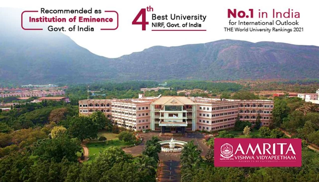 അന്താരാഷ്ട്ര യൂണിവേഴ്സിറ്റികള്ക്ക് സമാനമായ പഠനസൗകര്യങ്ങള് സജ്ജീകരിക്കപ്പെട്ട അമൃത വിശ്വവിദ്യാപീഠം നിങ്ങള്ക്ക് വഴിതുറന്നു തരുന്നത് ലോകത്തിലെ പ്രശസ്ത സ്ഥാപനങ്ങളില് മികവുറ്റ കരിയര് സാധ്യതകളാണ്. അമൃത വിശ്വവിദ്യാപീഠം 2021-ലെ 'ദി ഇംപാക്ട്' റാങ്കിംഗില്, ലോകത്തിലെ മികവുറ്റ 100 യൂണിവേഴ്സിറ്റികളില് ഒന്നായി തെരഞ്ഞെടുക്കപ്പെട്ടു.