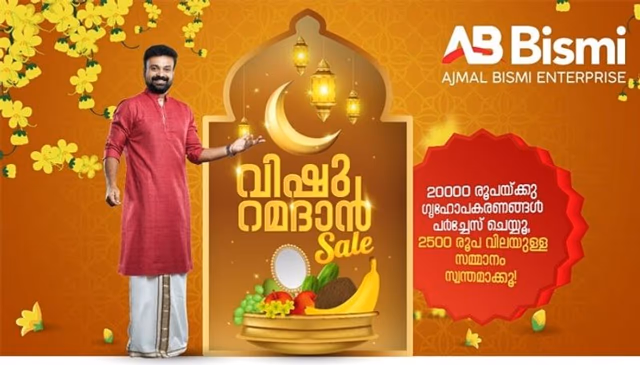 സൗത്ത് ഇന്ത്യയിലെ ഏറ്റവും വലിയ റീട്ടെയില് ഗ്രൂപ്പായ അജ്മല് ബിസ്മിയുടെ ഇലക്ട്രോണിക്സ്, ഹൈപ്പര്മാര്ട്ട് വിഭാഗങ്ങളില് വിഷു റമദാൻ സെയില്. ഇലക്ട്രോണിക്സ് വിഭാഗത്തില് നിന്നുളള ഓരോ 20000 രൂപയുടെ പർച്ചേസിലും 2500 രൂപയുടെ ഉറപ്പായ സമ്മാനം ഉണ്ടായിരിക്കുന്നതാണ്.