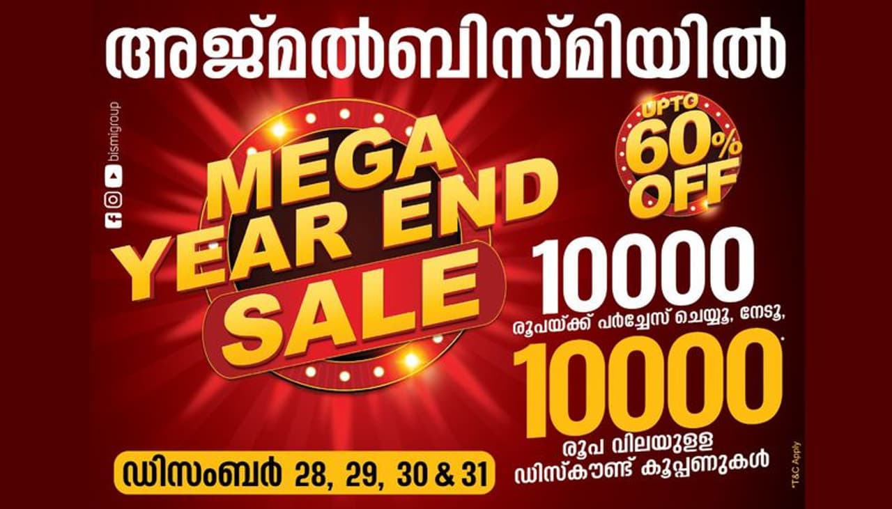 സൗത്ത് ഇന്ത്യയിലെ ഏറ്റവും വലിയ റീട്ടെയിൽ ഗ്രൂപ്പായ അജ്മൽബിസ്മിയിൽ തകർപ്പൻ ഓഫറുകളുമായി ഇയർ എൻഡ് സെയിൽ. 10000 രൂപയുടെ പർച്ചേസുകളിൽ 10000 രൂപയുടെ ഡിസ്കൗണ്ട് കൂപ്പണുകൾ സ്വന്തമാക്കാവുന്നതാണ്. പഴയ ഗൃഹോപകരണങ്ങൾ, സ്മാർട്ട്ഫോണുകൾ, ലാപ്ടോപ്പുകൾ തുടങ്ങിയവ കൂടിയ വിലയിൽ എക്സ്ചേഞ്ച് ചെയ്ത് പുതിയവ സ്വന്തമാക്കാനുളള അവസരവും ഒരുക്കിയിട്ടുണ്ട്.