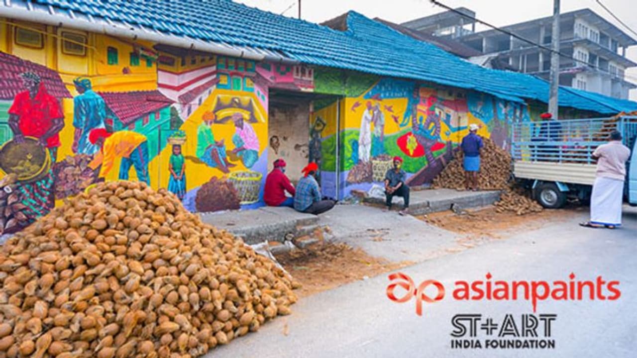 കോഴിക്കോട്ടെ തിരക്കേറിയ കൊപ്രചന്തയിലേക്ക് കച്ചവടത്തിനായി മാത്രമല്ല ആളുകൾ എത്തുന്നത്. പുരാതനമായ ഈ ചന്തയുടെ ചുമരുകളിൽ ഏഷ്യൻ പെയിന്റ്സും സ്റ്റാർട്ട് ഇന്ത്യ ഫൗണ്ടേഷനും ചേർന്നൊരുക്കിയിരിക്കുന്ന മനോഹരമായ കലാവിരുന്ന് ആസ്വദിക്കാൻ കൂടിയാണ്.