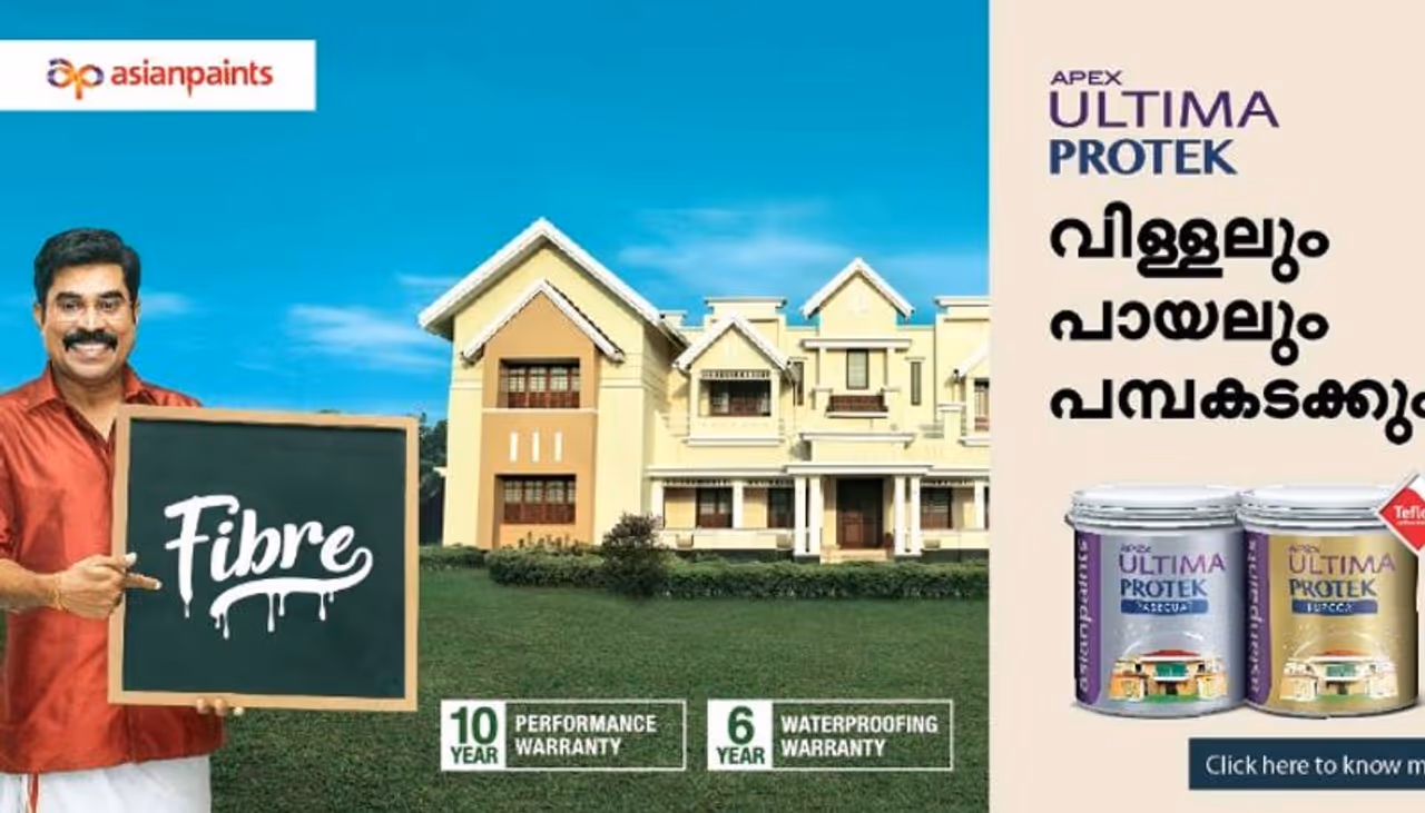 കാലാവസ്ഥ വ്യതിയാനങ്ങൾക്കിടയിൽ നിങ്ങളുടെ വീട് മനോഹരമായിരിക്കുക എന്നത് വലിയ വെല്ലുവിളിയാണ്. പായലും പൂപ്പലും വിള്ളലുമെല്ലാം വീടിന്റെ മനോഹാരിതയെ ബാധിക്കും. മാറിമാറി എത്തുന്ന മഴയും വെയിലും മാത്രമല്ല, വീടുപണിയാൻ ഉപയോഗിച്ച മണലിന്റേയും സിമന്റിന്റേയും ഗുണനിലവാരവും വിള്ളലടക്കമുള്ള പ്രശ്നങ്ങൾക്ക് കാരണമാവും. ഈ പ്രശ്നത്തിനുള്ള സമ്പൂർണ്ണ പരിഹാരമാണ് ഏഷ്യൻ പെയിന്റ്സ് അൾട്ടിമ പ്രൊട്ടെക്കിൽ ഉപയോഗിച്ചിട്ടുള്ള അക്രിലിക് ഫൈബർ ടെക്നോളജി. ഈ പെയിന്റ് ചുവരുകൾക്ക് പുറത്ത് മിനുസമുള്ള ഫിലിം പോലുള്ള സുരക്ഷിത കവചം സൃഷ്ടിക്കുന്നു. മനോഹരമായ ഈ ഫിനിഷ് വിള്ളലിനേയും പായലിനേയും ഒഴിവാക്കാൻ സഹായിക്കുന്നു.