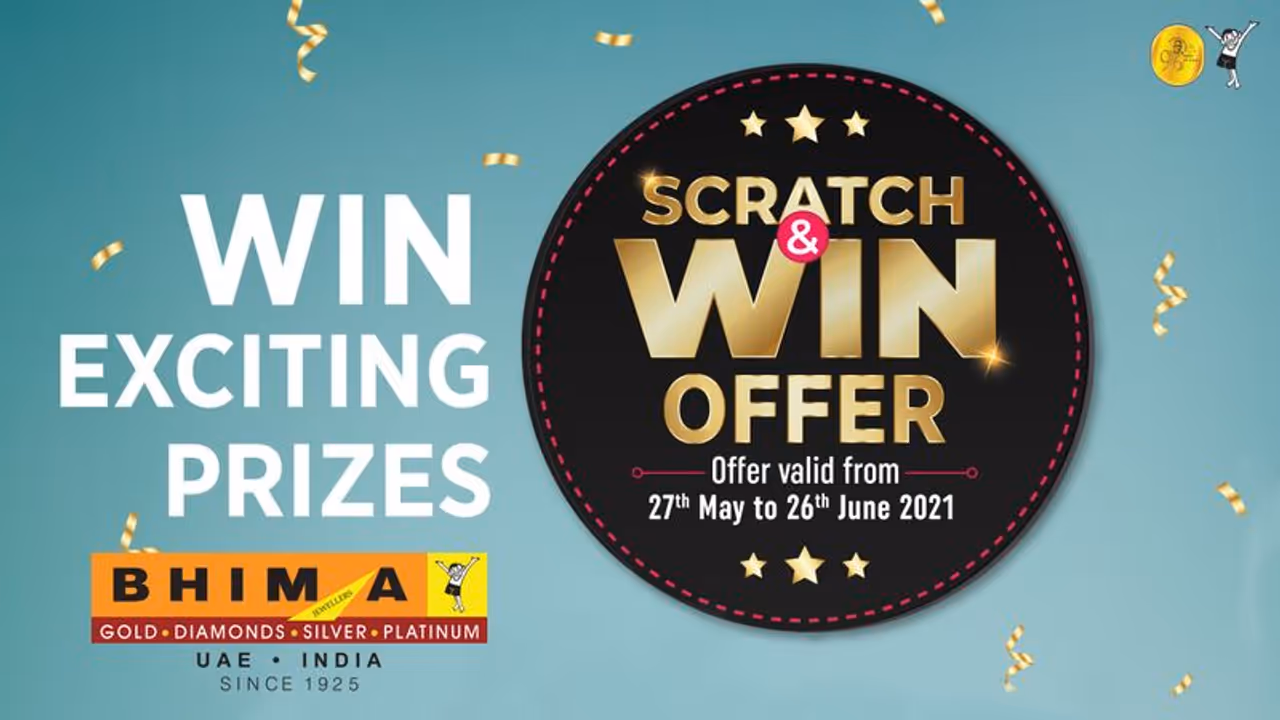 മെയ് 27 മുതൽ ജൂൺ 26 വരെ നടക്കുന്ന സ്ക്രാച്ച് ആൻഡ് വിൻ ഓഫറാണ് ഭീമ ഒരുക്കിയിട്ടുള്ളത്. 2000 ദിർഹത്തിൻ്റെ സ്വർണ്ണാഭരണങ്ങൾ വാങ്ങുന്നവർക്ക് ഒരു സ്ക്രാച്ച് കാർഡും ഡയമണ്ട് ആഭരങ്ങൾ വാങ്ങുന്നവർക്ക് രണ്ടു സ്ക്രാച്ച് കാർഡുകളും ലഭിക്കും.