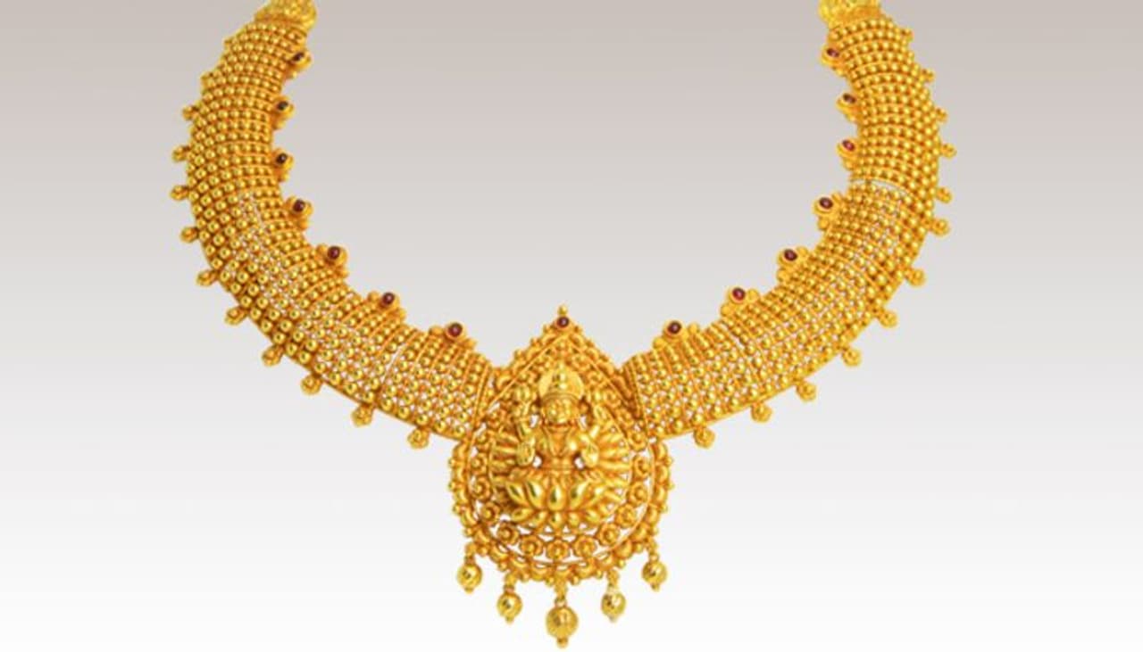 ഏറെ പ്രചാരമുള്ള ആന്റിക്ക് ആഭരണ ഡിസൈനുകളിൽ ഒന്നാണ് ലക്ഷ്മി നെക്ലേസ്. ഭാരതീയ പുരാണങ്ങളിലെ ധനദേവതയായ ലക്ഷ്മി ദേവിയുടെ രൂപത്തിന് ചുറ്റും മനോഹരമായ പൂക്കൾ കൂടി ചേരുന്ന ഈ ആഭരണം ദേവിക്കുള്ള പുഷ്പാർച്ചന പോലെ അനുഭവപ്പെടുന്നു. മനോഹരമായി പതിപ്പിച്ചിട്ടുള്ള കല്ലുകൾ ഈ മലയുടെ തിളക്കം കൂട്ടുന്നു. മാറ്റ് ഫിനിഷിലുള്ള ഈ നെക്ലേസ് പാരമ്പരാഗത സിൽക്ക് ശരിക്കൊപ്പം ഏറെ ചേരുന്ന ആഭരണങ്ങളിൽ ഒന്നാണ്.