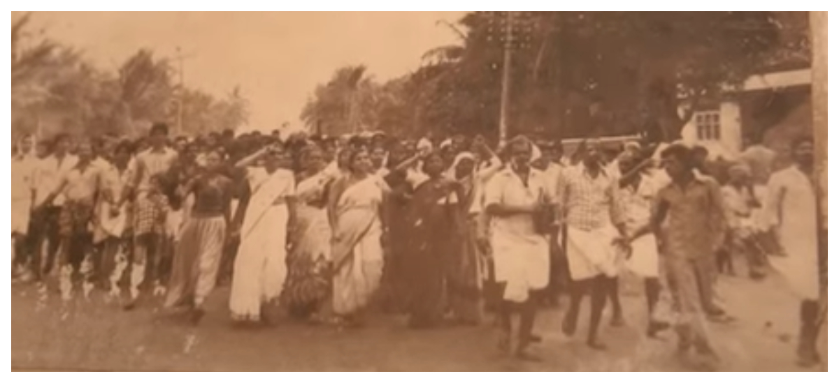 ഡോക്യുമെന്ററി ചിത്രീകരണത്തിനിടയില് സമരനേതാവായിരുന്ന പികെഎം ചേക്കുവിനൊപ്പം സംവിധായിക