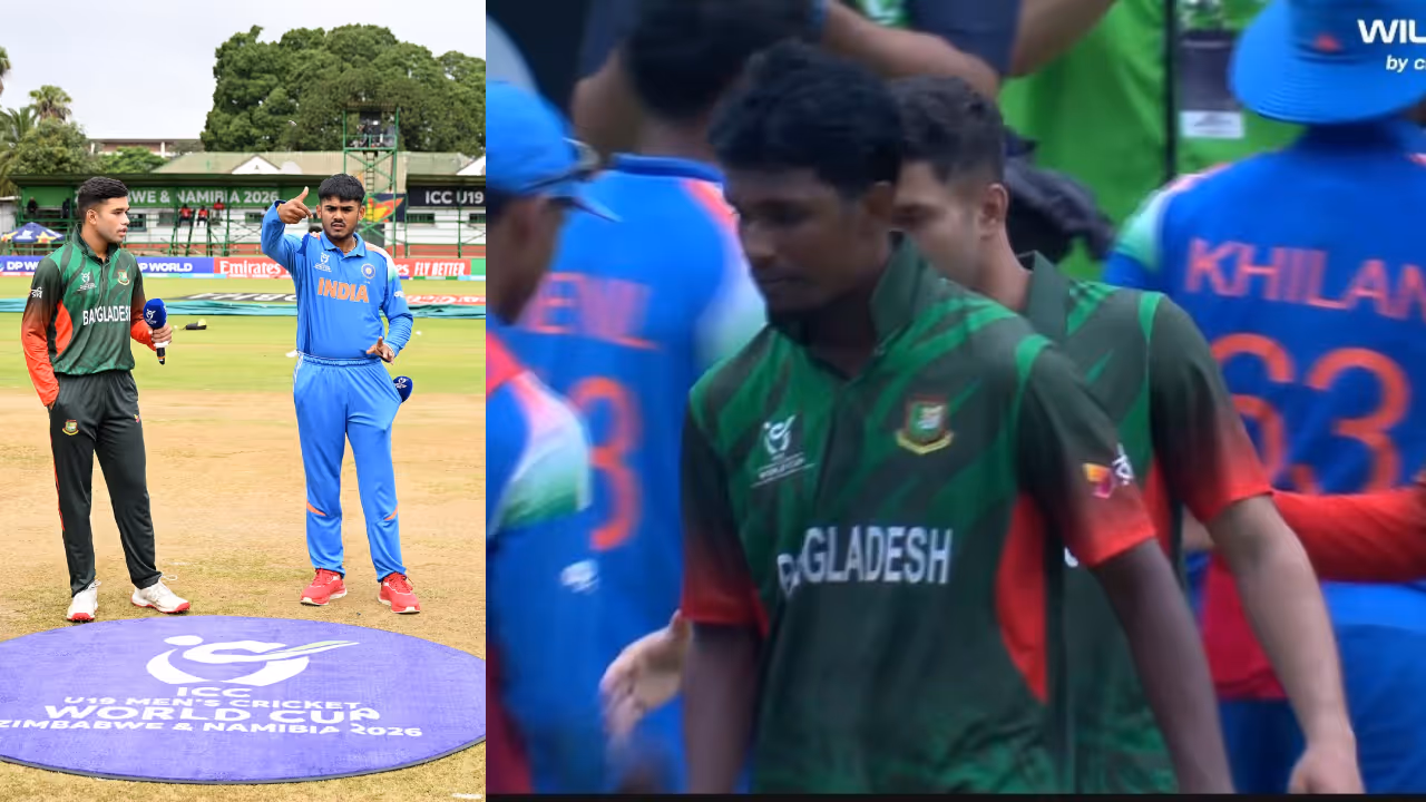 ഏഷ്യാ കപ്പിനിടെ ഉണ്ടായ ഇന്ത്യ-പാകിസ്ഥാന് താരങ്ങളുടെ ഹസ്തദാന വിവാദത്തെ ഓര്മിപ്പിച്ചാണ് ബംഗ്ലാദേശ് വൈസ് ക്യാപ്റ്റൻ കൂടിയായ സവാദ് അബ്രാര് ടോസിട്ട ശേഷം ആയുഷ് മാത്രെക്ക് കൈ കൊടുക്കാൻ വിസമ്മതിച്ച് കയറിപ്പോയത്.