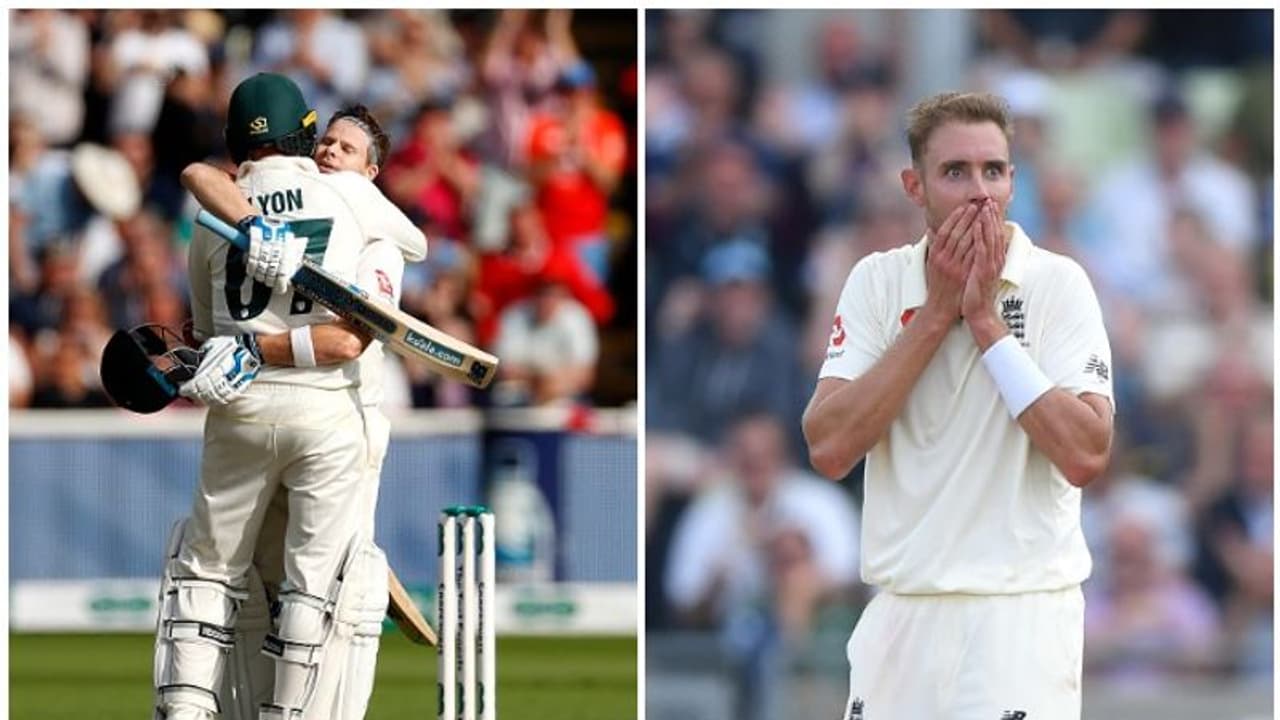 മാത്യൂ വെയ്ഡ്(1), ടിം പെയ്ന്(5), ജെയിംസ് പാറ്റിന്സണ്(0), പാറ്റ് കമ്മിന്സ്(5) എന്നിങ്ങനെയാണ് പിന്നീട് വന്നവരുടെ സ്കോര്. ഒന്പതാം വിക്കറ്റില് സ്മിത്തിനൊപ്പം പീറ്റര് സിഡിലിന്റെ ചെറുത്തുനില്പ്പ് നിര്ണായകമായി. 85 പന്തില് 44 റണ്സെടുത്ത സിഡിലിനെ മൊയിന് അലി പുറത്താക്കിയതോടെ ഓസീസിന് വീണ്ടും പാളി. തകര്പ്പന് ഇന്നിംഗിനൊടുവില് 144ല് നില്ക്കേ സ്മിത്തിനെ പുറത്താക്കി ബ്രോഡ് അഞ്ച് വിക്കറ്റ് തികച്ചതോടെ ഓസീസ് ഇന്നിംഗ്സ് അവസാനിച്ചു. ലിയോണ് 12 റണ്സ് നേടി.