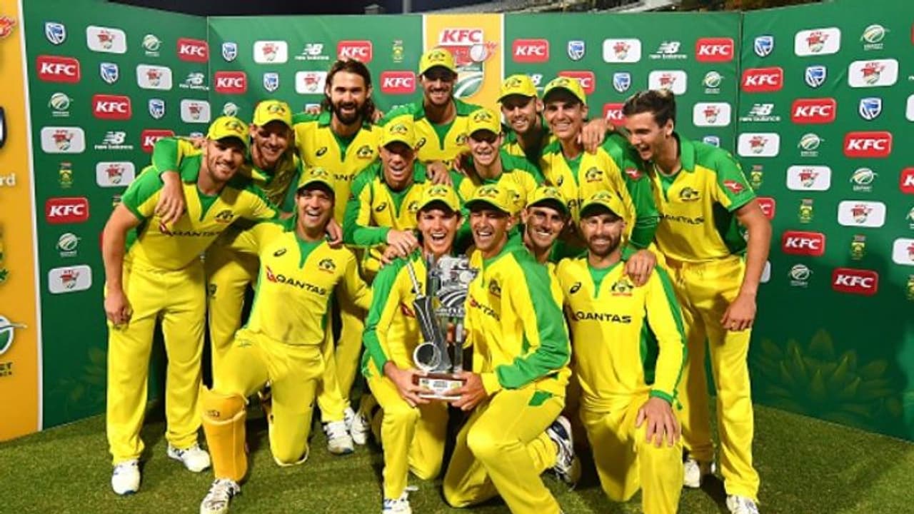 കേപ്ടൗണ്: ദക്ഷിണാഫ്രിക്കയ്ക്കെതിരായ ട്വന്റി 20 പരമ്പരയിൽ ഓസ്ട്രേലിയ ജേതാക്കള്(2-1). പരമ്പരയിലെ മൂന്നാമത്തെയും അവസാനത്തെയും മത്സരത്തിൽ 97 റൺസിന് ഓസീസ് ജയം സ്വന്തമാക്കി. വിജയലക്ഷ്യമായ 194 റൺസ് പിന്തുടര്ന്ന ദക്ഷിണാഫ്രിക്ക 96 റൺസിന് പുറത്താവുകയായിരുന്നു. സ്കോര്: ഓസീസ്-193-5 (20), ദക്ഷിണാഫ്രിക്ക-96-10 (15.3).